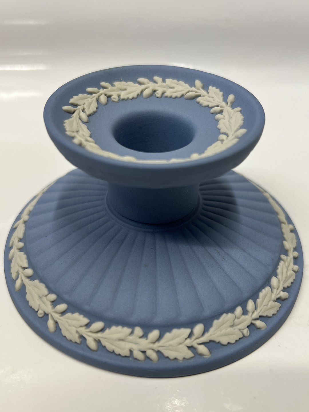 Wedgwood, Jasperware, Blå Lysestage, England.Højde 5 cm