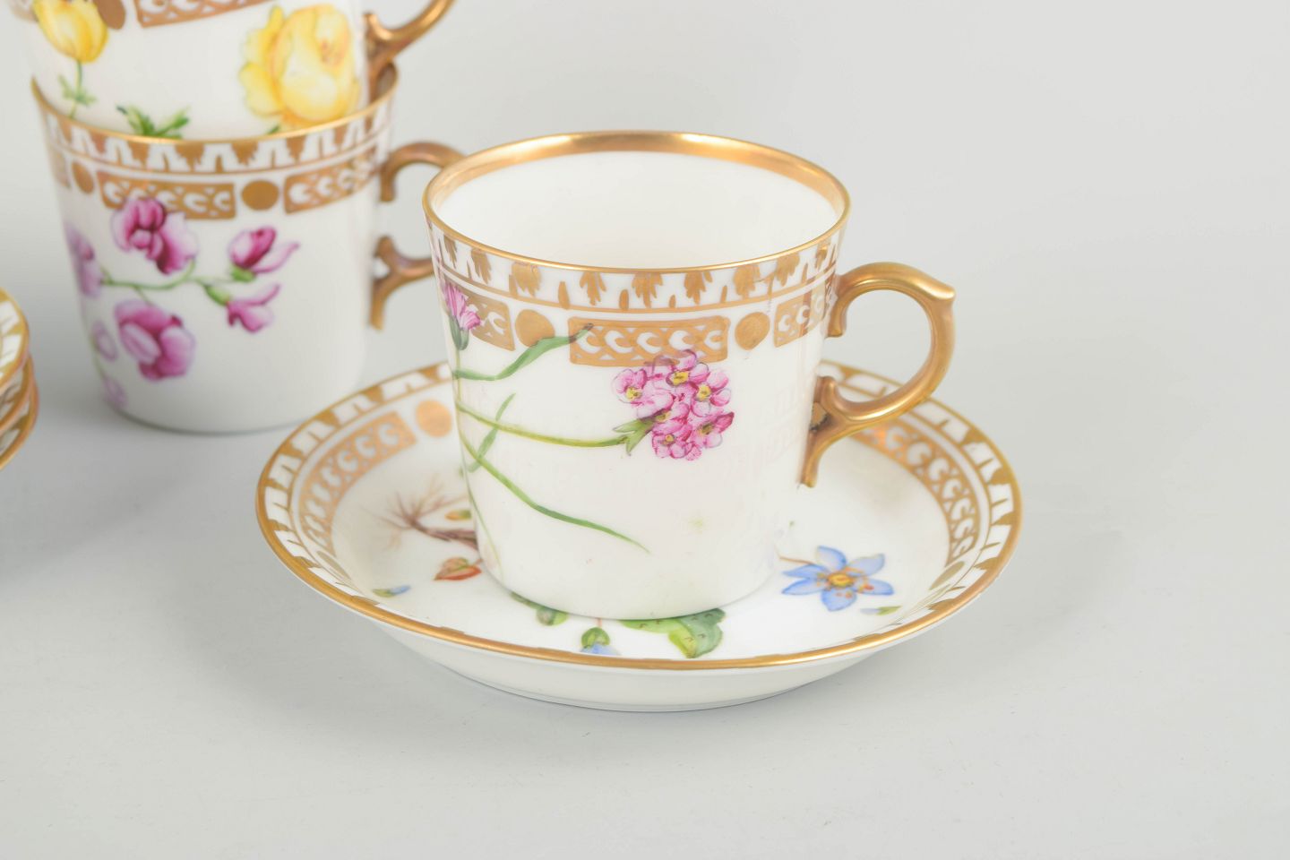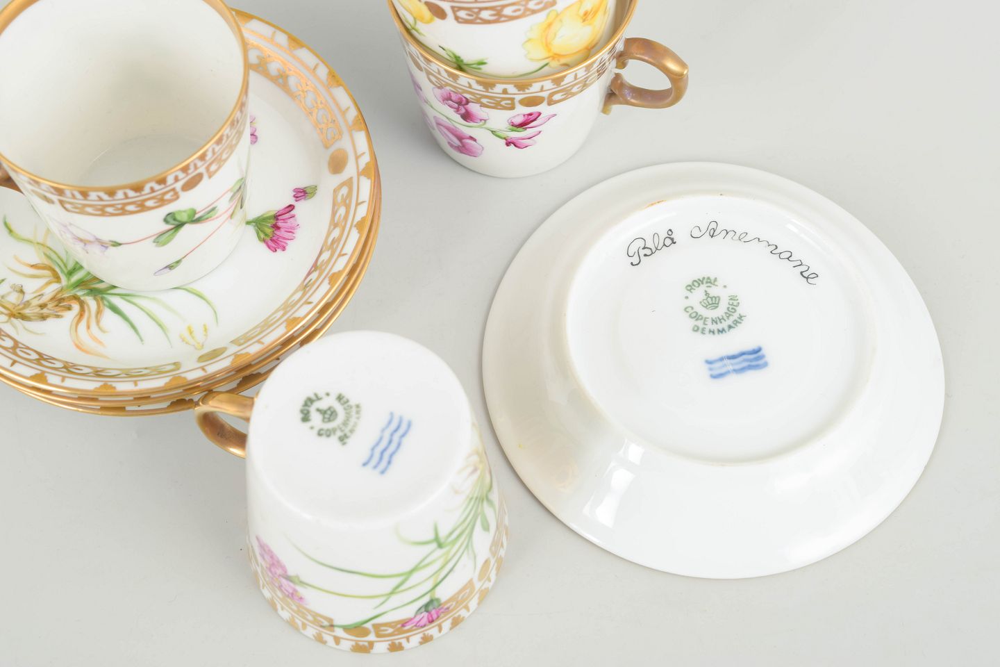 Royal Copenhagen, sæt på fire små kaffekopper med tilhørende underkopper.Oprindelse: Danmark.