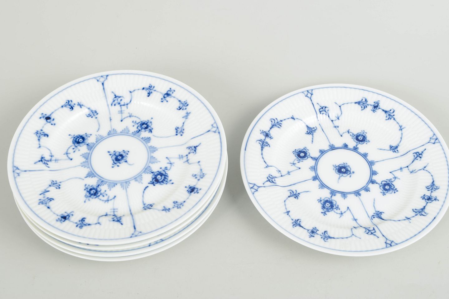 Royal Copenhagen, Musselmalet Riflet sæt på 5 kagetallerkener.Beschreibung:
