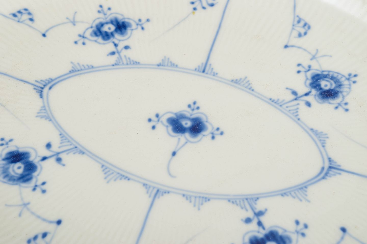Royal Copenhagen, Musselmalet Riflet serveringsfad.Beschreibung: