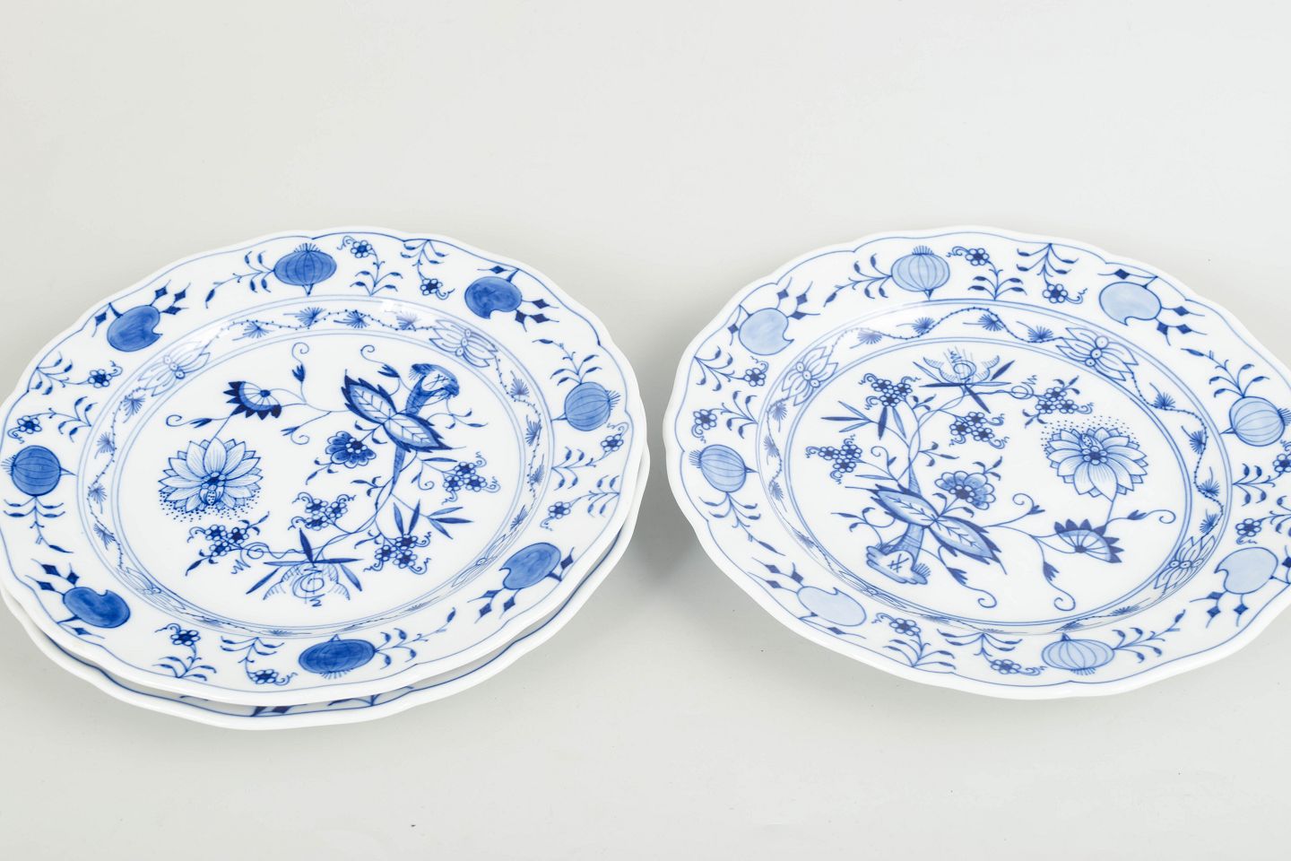 Meissen, Blå løgmønster, sæt på 3 middagstallerkener.Beschreibung: