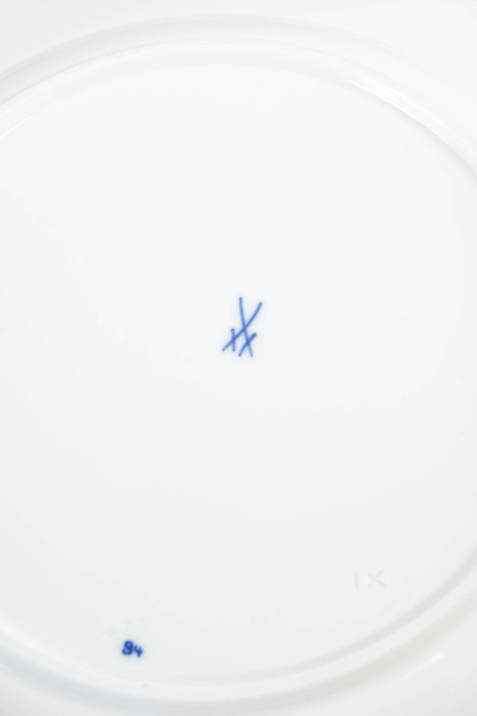 Nogle i første fabrikskvalitet og nogle annulleret med to indridsede linjer. Mærket i bunden med Meissens krydsede sværd.