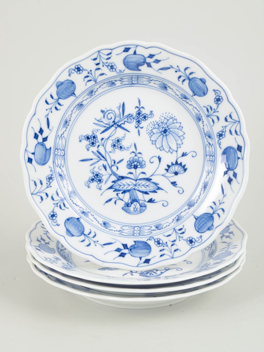 Meissen, Blå løgmønster, sæt på fire tallerkener.Beschreibung: