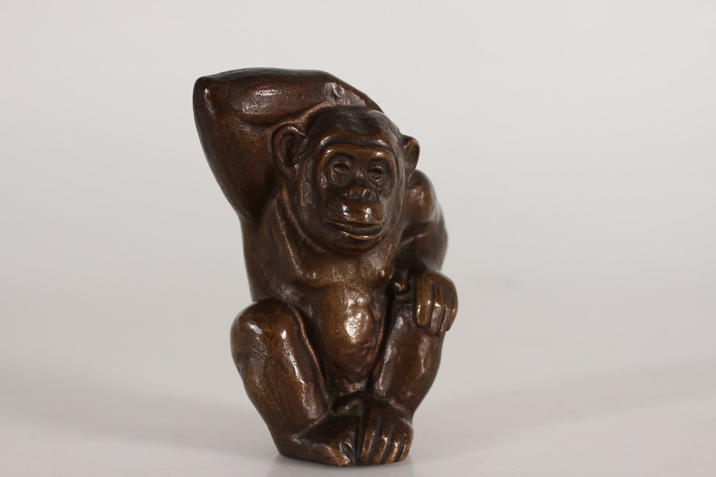 Svend Lindhart (1898-1989)Bronzefigur af siddende chimpanse