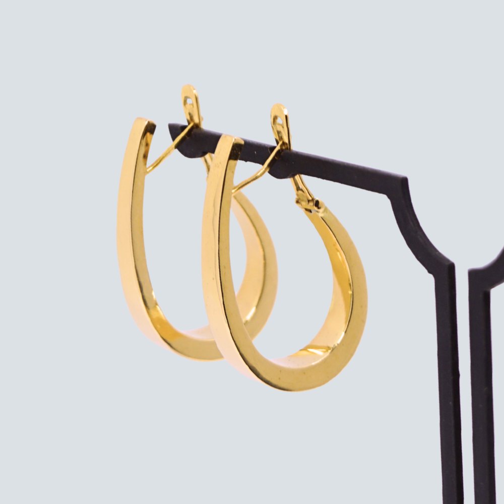 Par store øreringe i 18kt. guld. Aflang creol form.L. 3,8 cm.