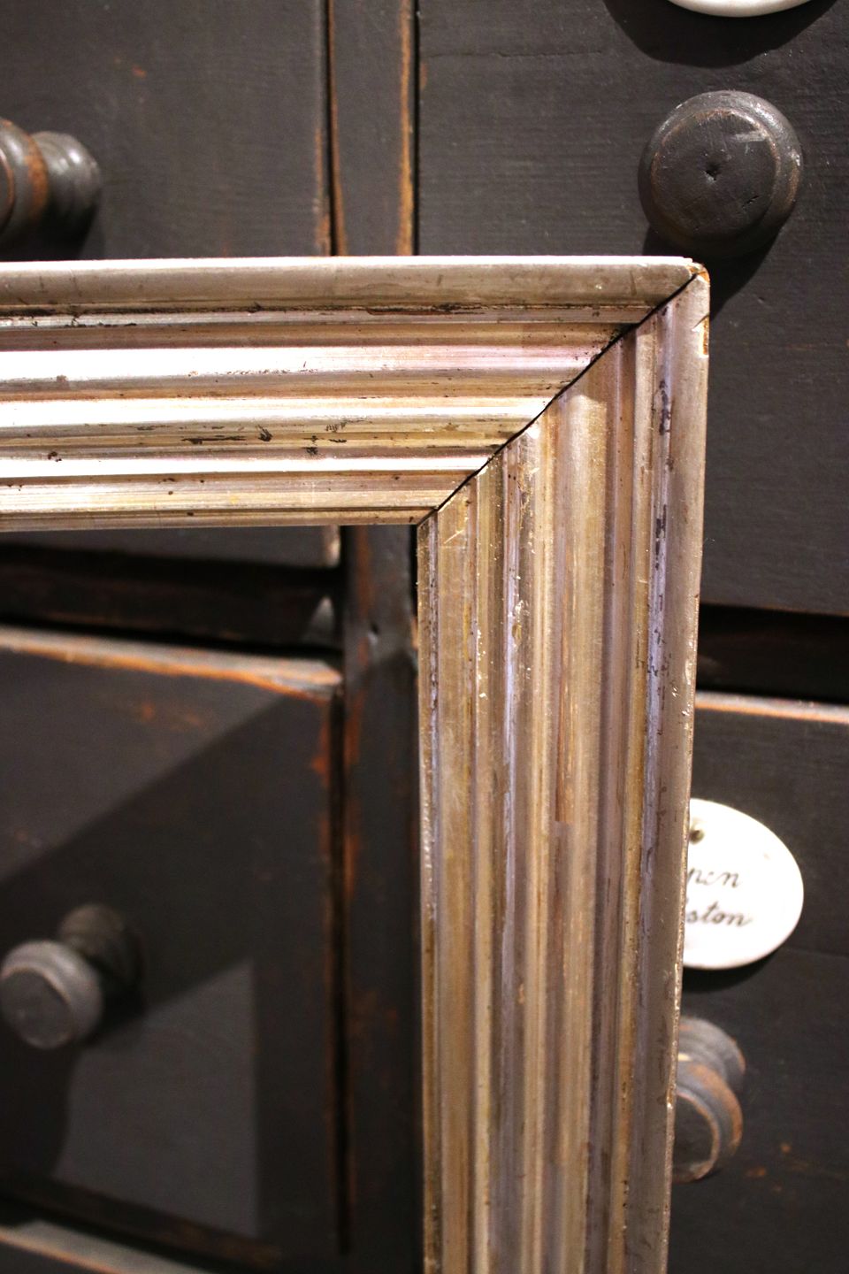Antik 1800 tals træ ramme med original gammelsølvbelægning og fin patina.