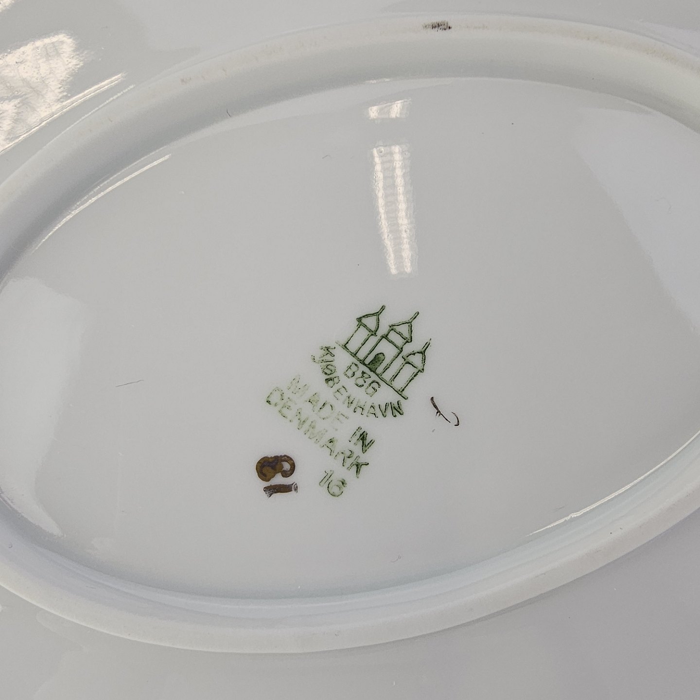 Ovalt fad fra stellet Krysantemum. Nr. 16Producent Bing & Grøndahl