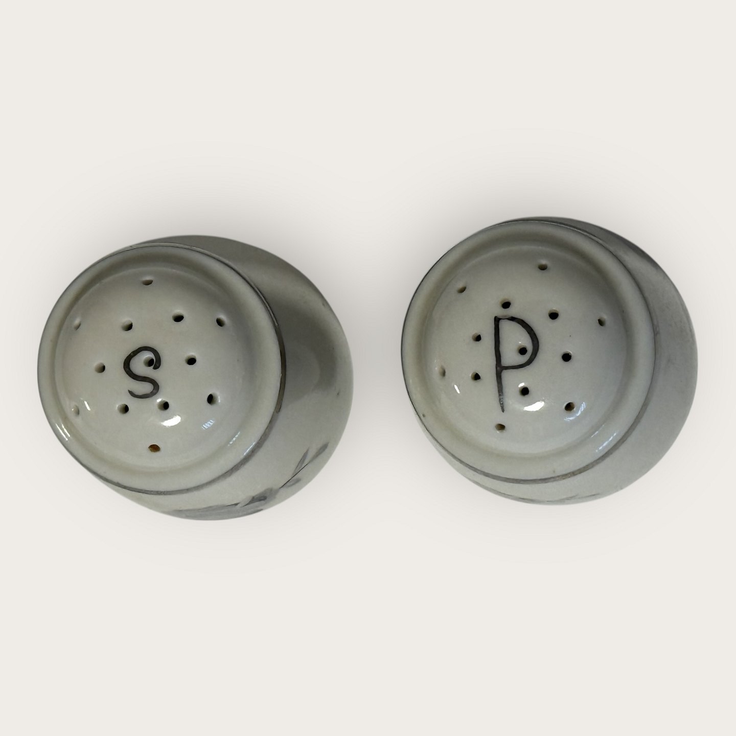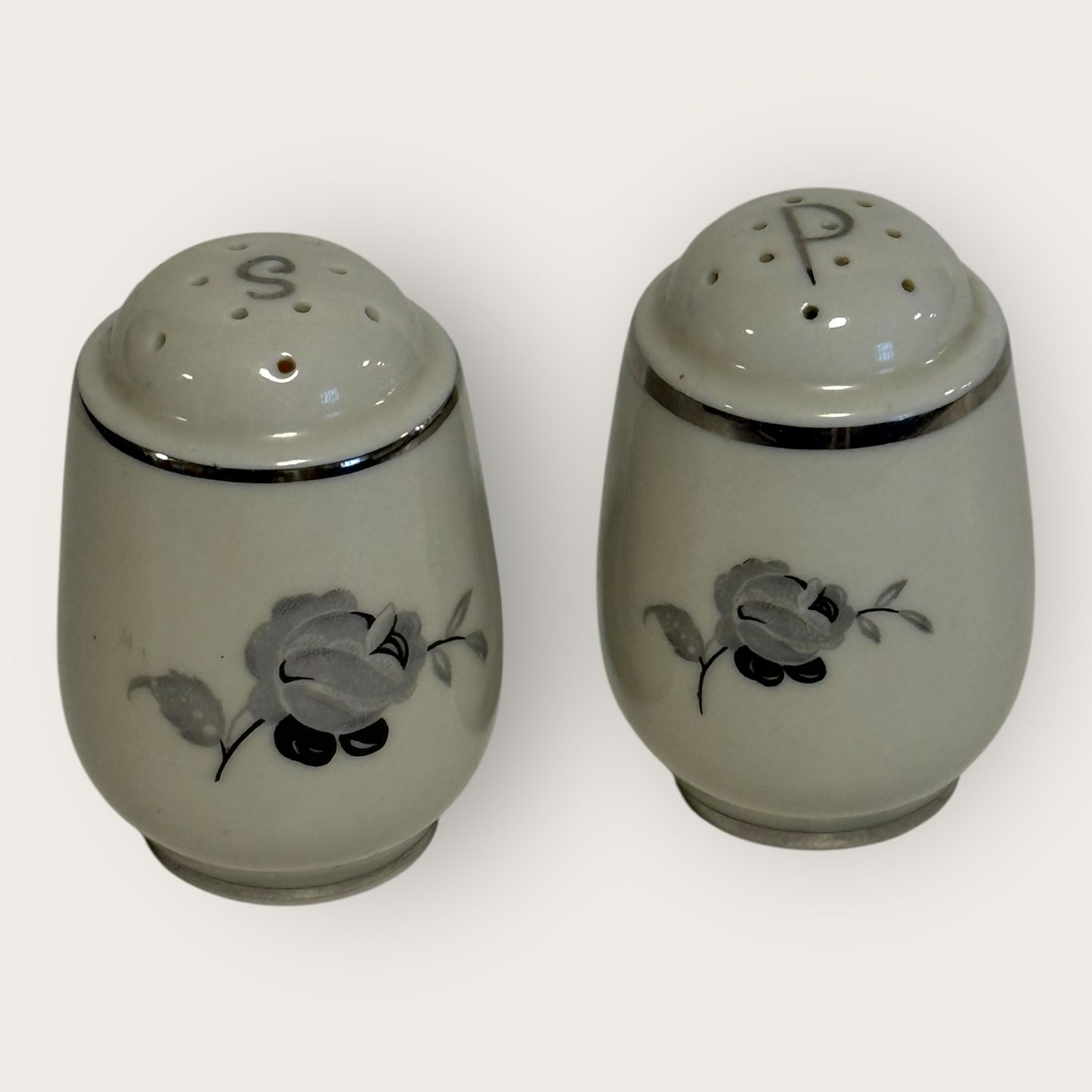 Schwarze Rose, mit Plantin-Rand, KPM, Lyngby, Salz- und Pfefferstreuer-Set, Höhe 5,5 cm *Guter Zustand*Lager: 1