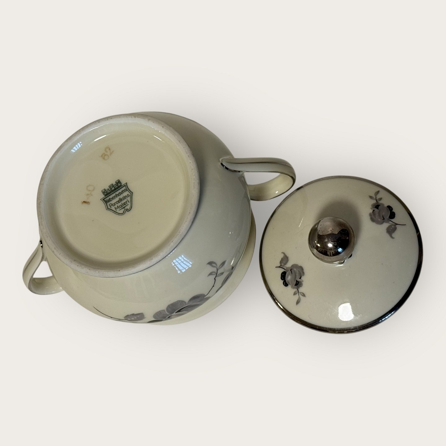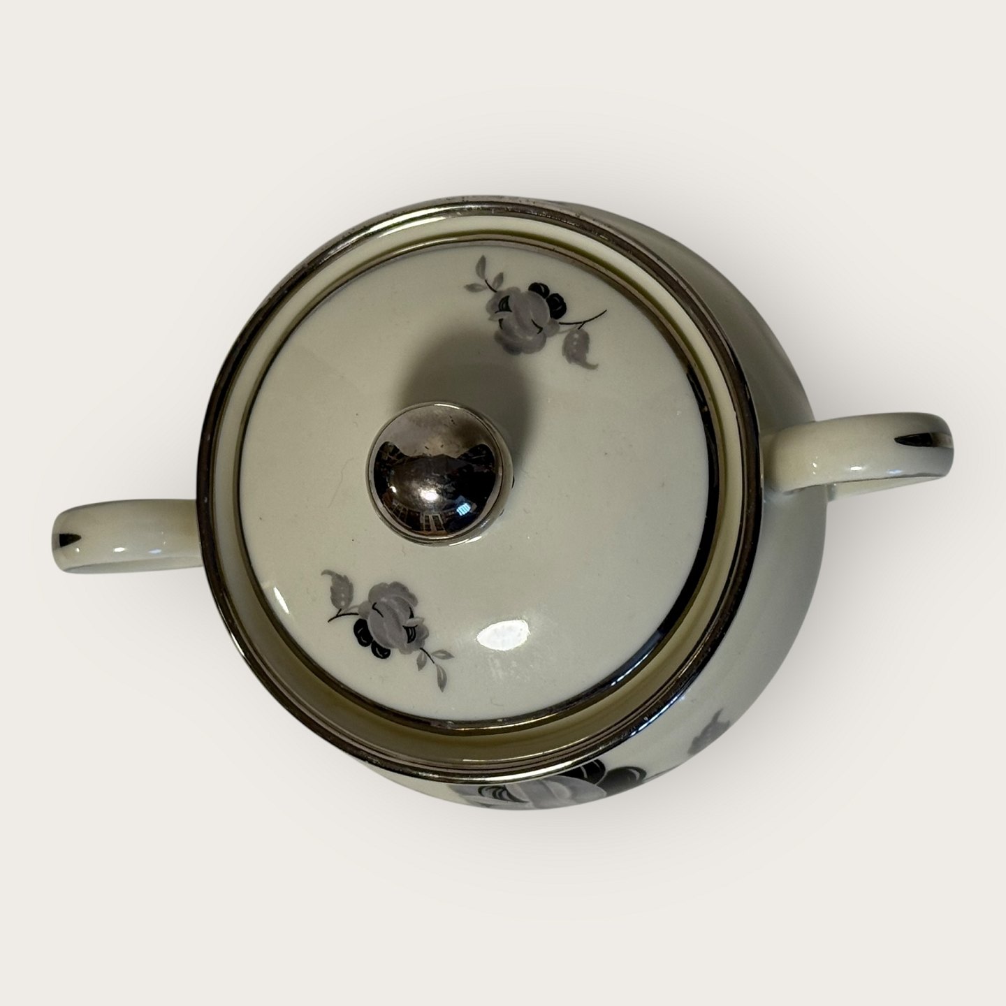 Zuckerdose „Black rose“ mit Plantin-Rand, KPM, Lyngby, Maße ca. 16 x 11 x 11 cm *Guter Zustand*Lager: 1