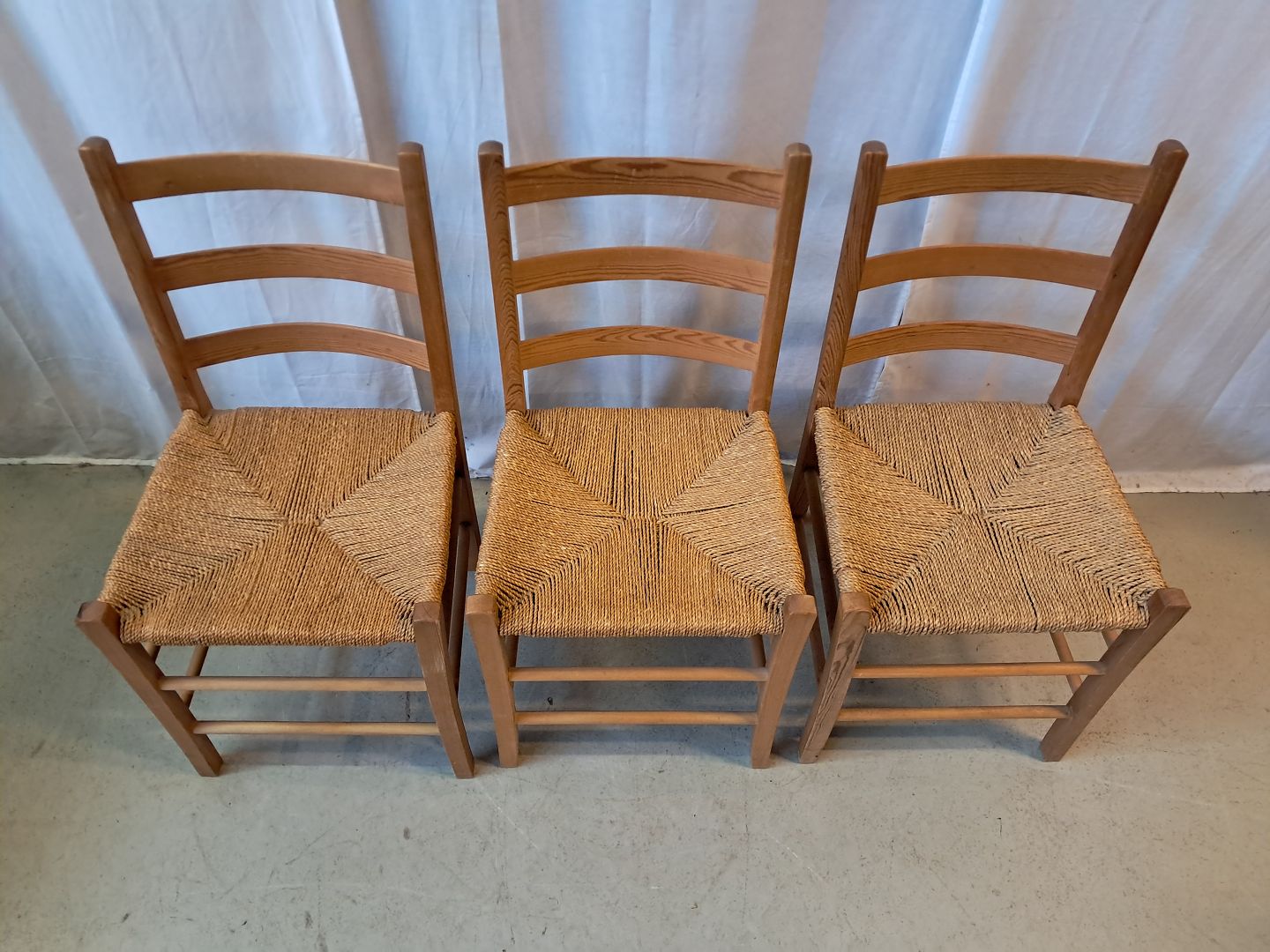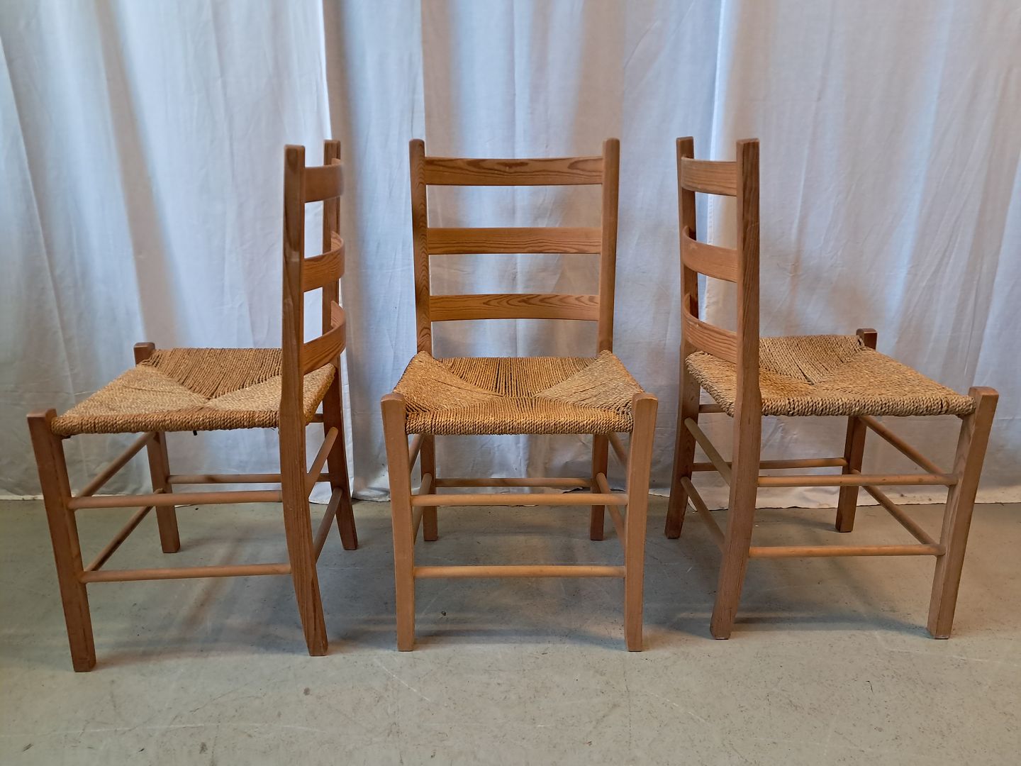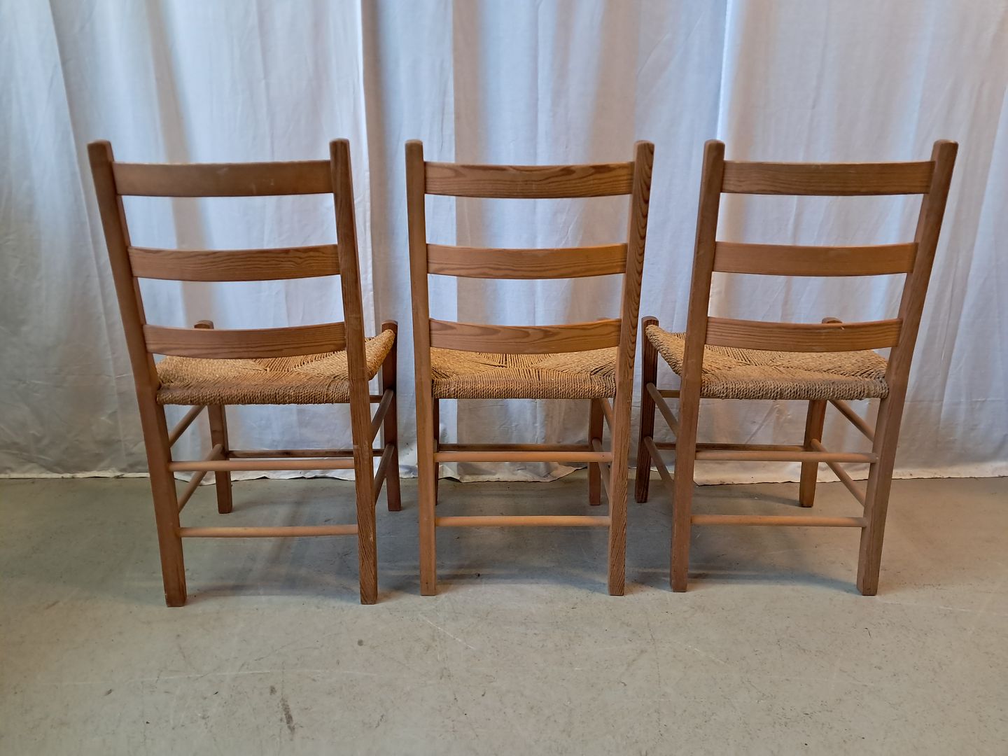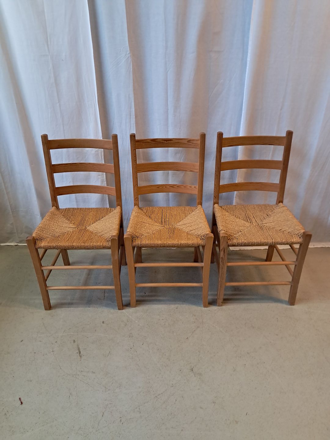 3 Stole i massivt fyrretræ, fra 1980erne.De har brugsspor.