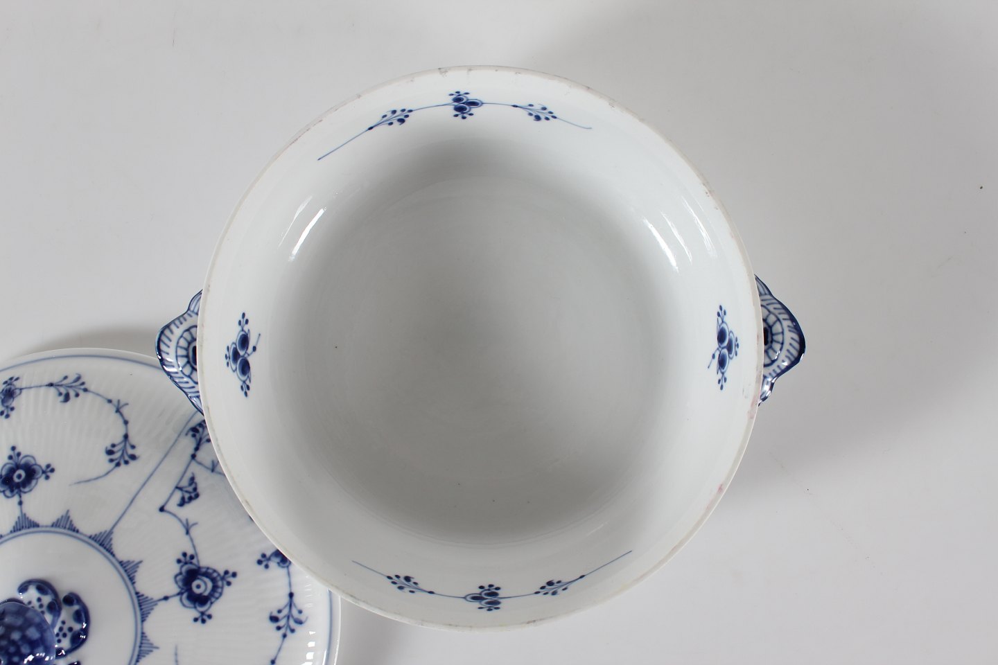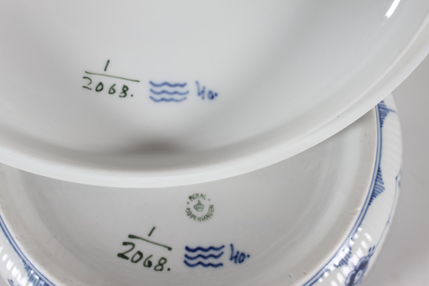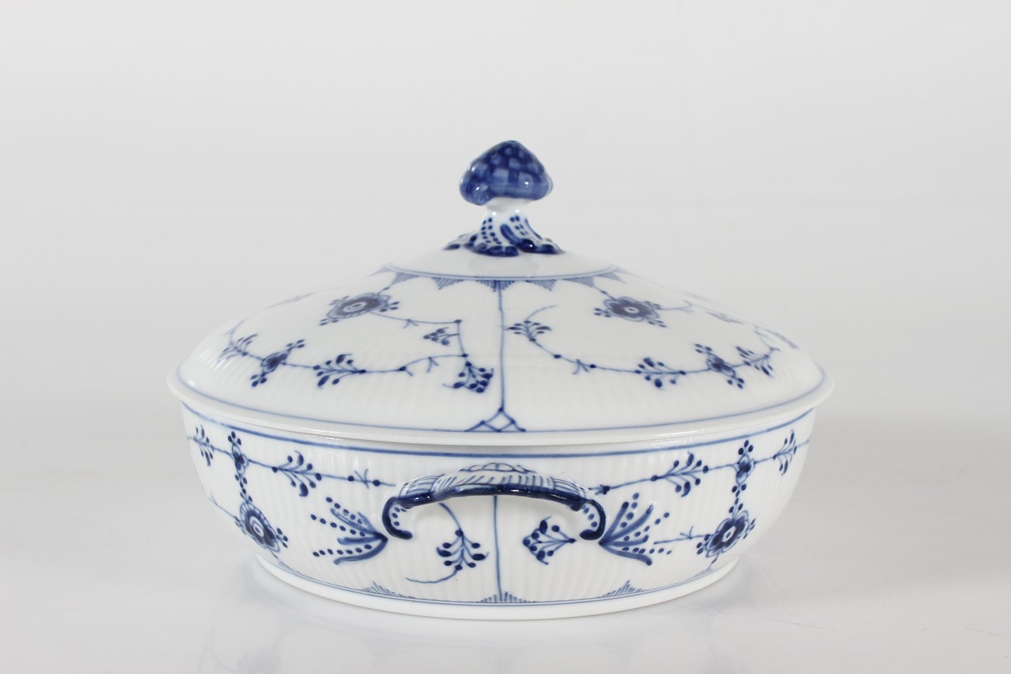 Royal Copenhagen Musselmalet RifletRundt antik lågfad med stempel fra