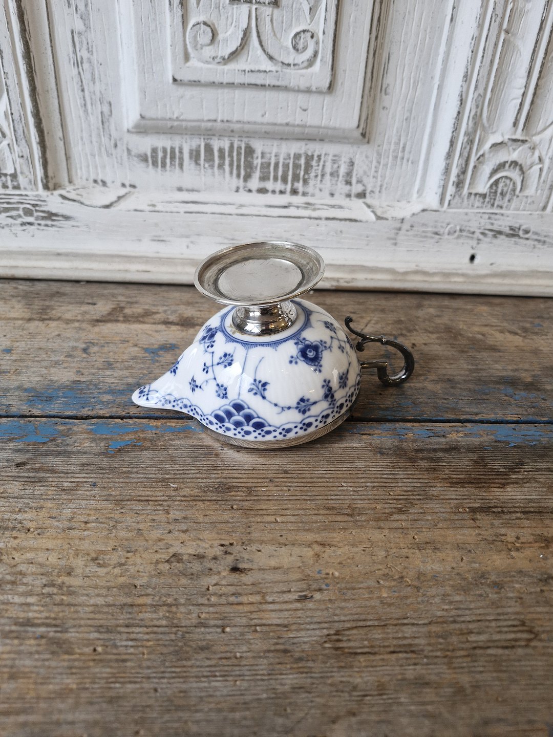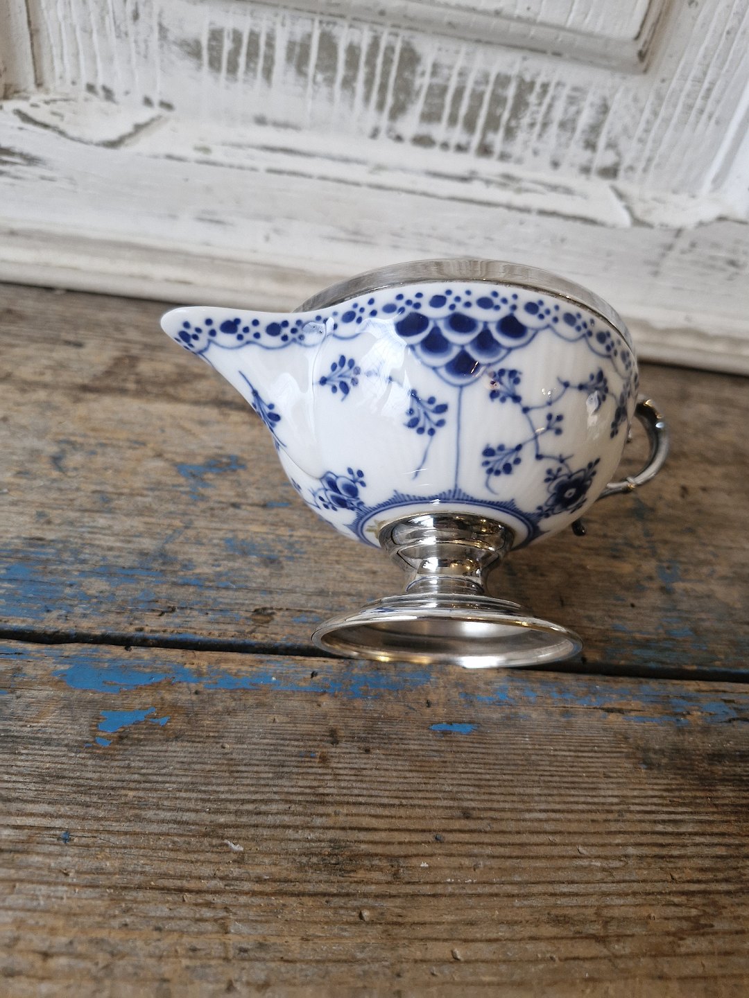 Royal Copenhagen Musselmalet halvblonde flødekande med forsølvet montering