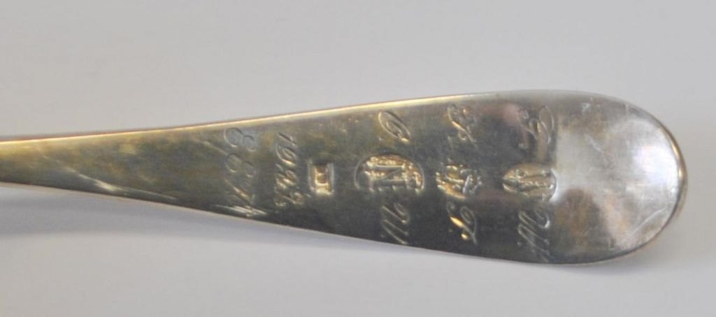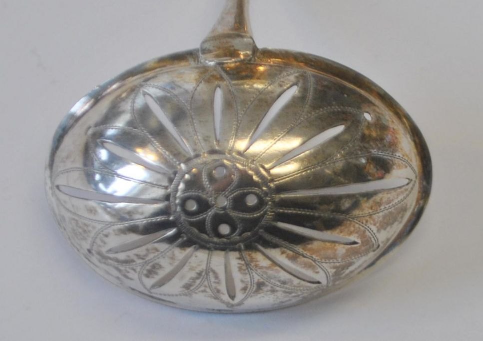 Niels Christian Lindback (ca. 1767–1797), Kopenhagen, Dänemark: Silberner Ströske. Gestempelt mit Meistermarke, Stadtmarke usw. Länge: 18 cm. Mit Verzierungen und Initialen.Bestellnummer: 29016