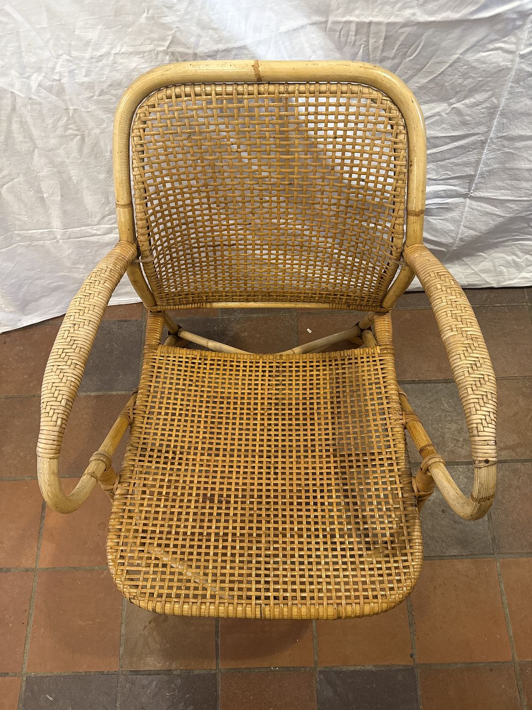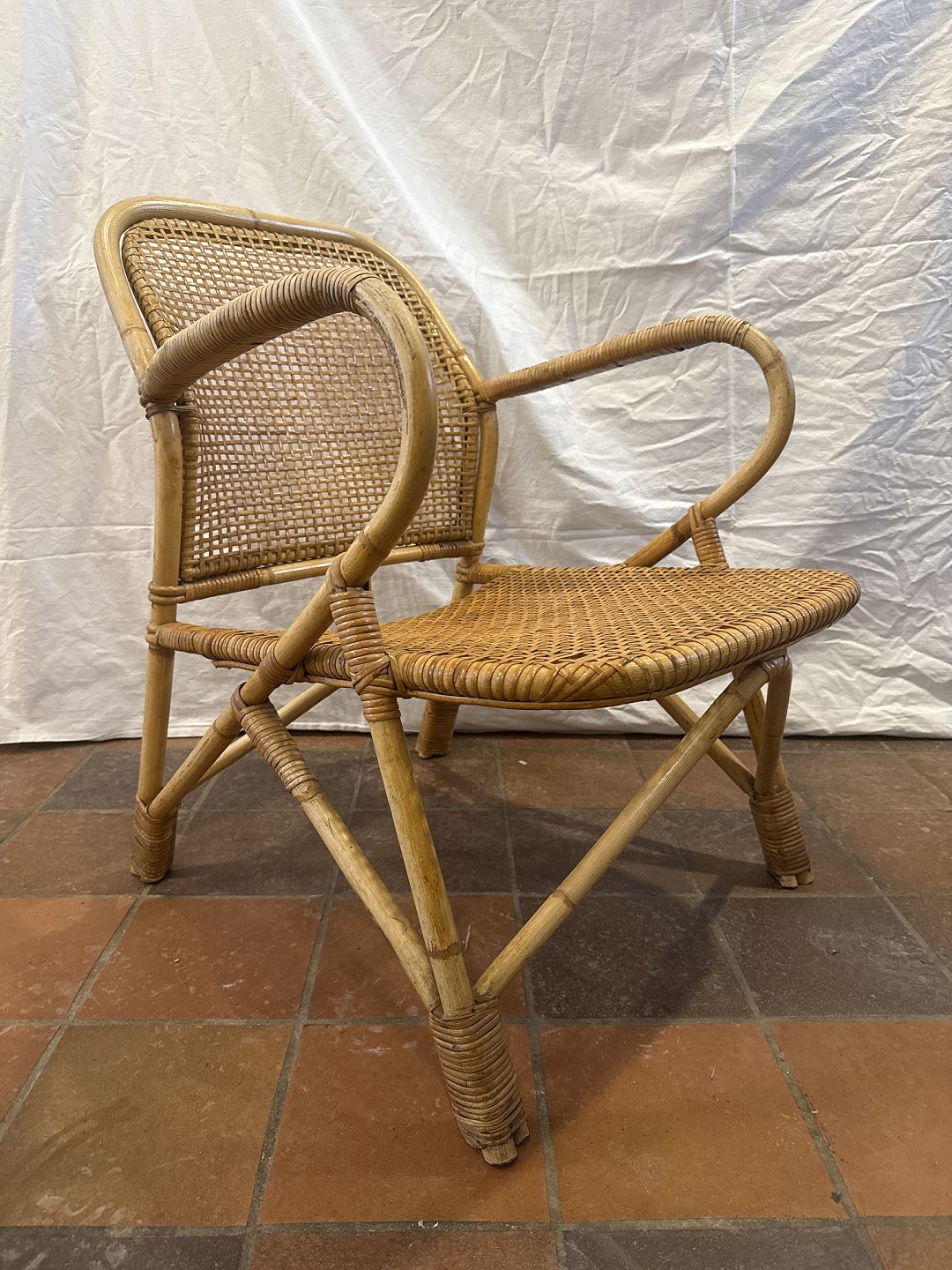 Dansk møbelproducent kurvestol i bambus og sjeneflet.Fremstillet ca. 1930'erne.