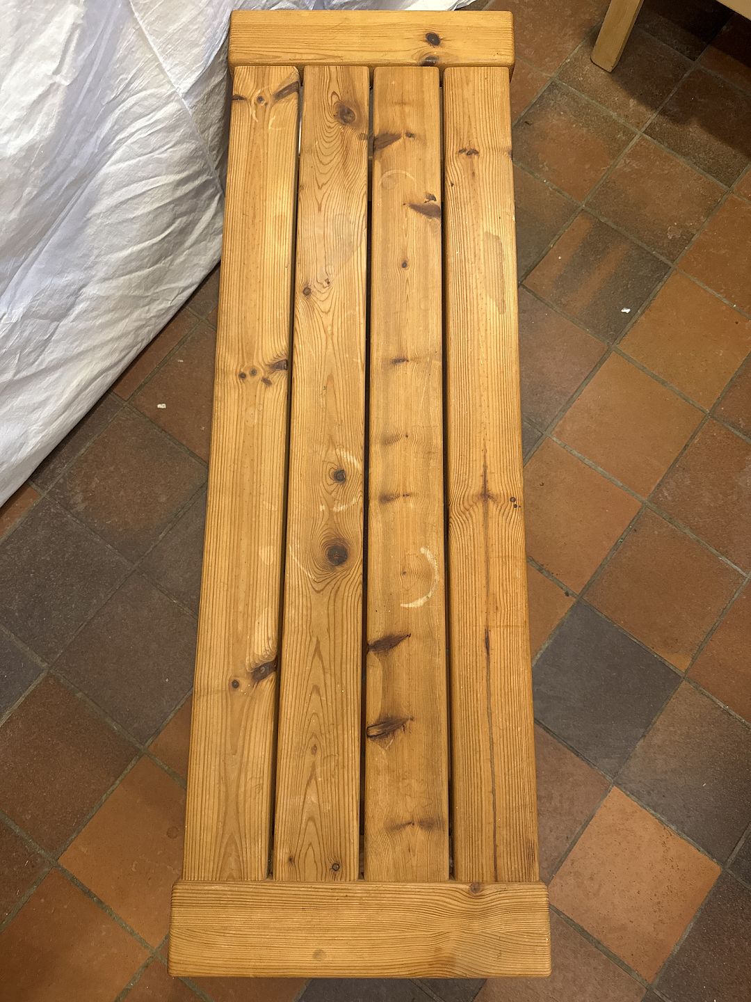 Svensk møbeldesign lav bænk udført i massiv fyr.Produceret ca. 1970'erne.