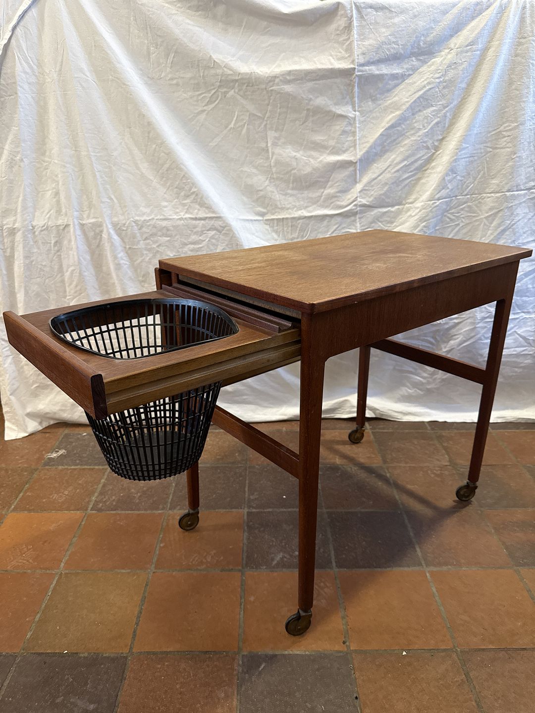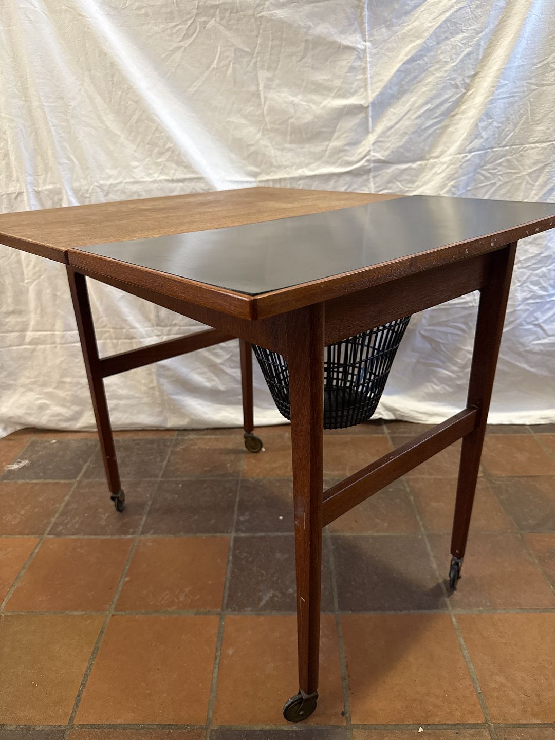 Dansk møbelproducent sybord i fineret teak m. plade i formica.Fremstillet ca. 1970'erne.