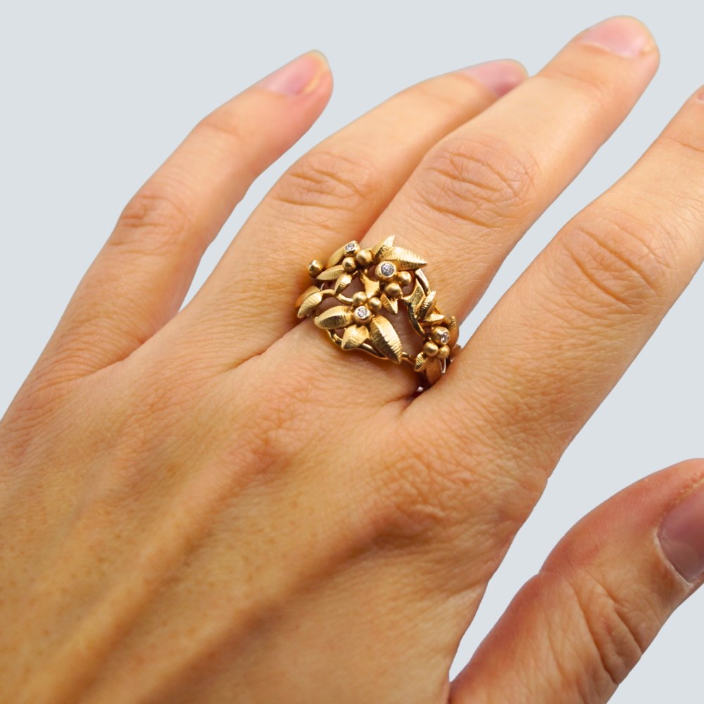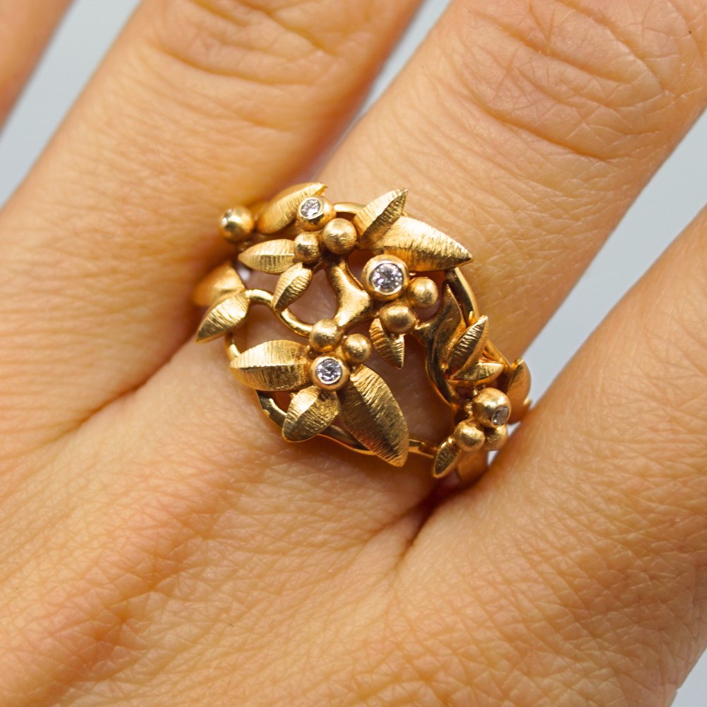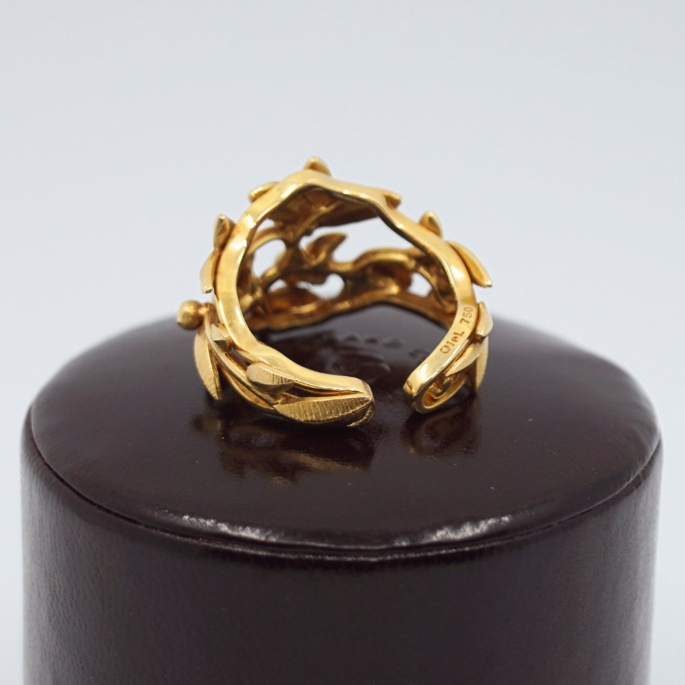 Ole Lynggaard guld smykke.Charlotte Lynggaard for Ole Lynggaard; Spring ring af 18 kt. guld, prydet med fem diamanter, i alt 0,06 ct. TW VS.