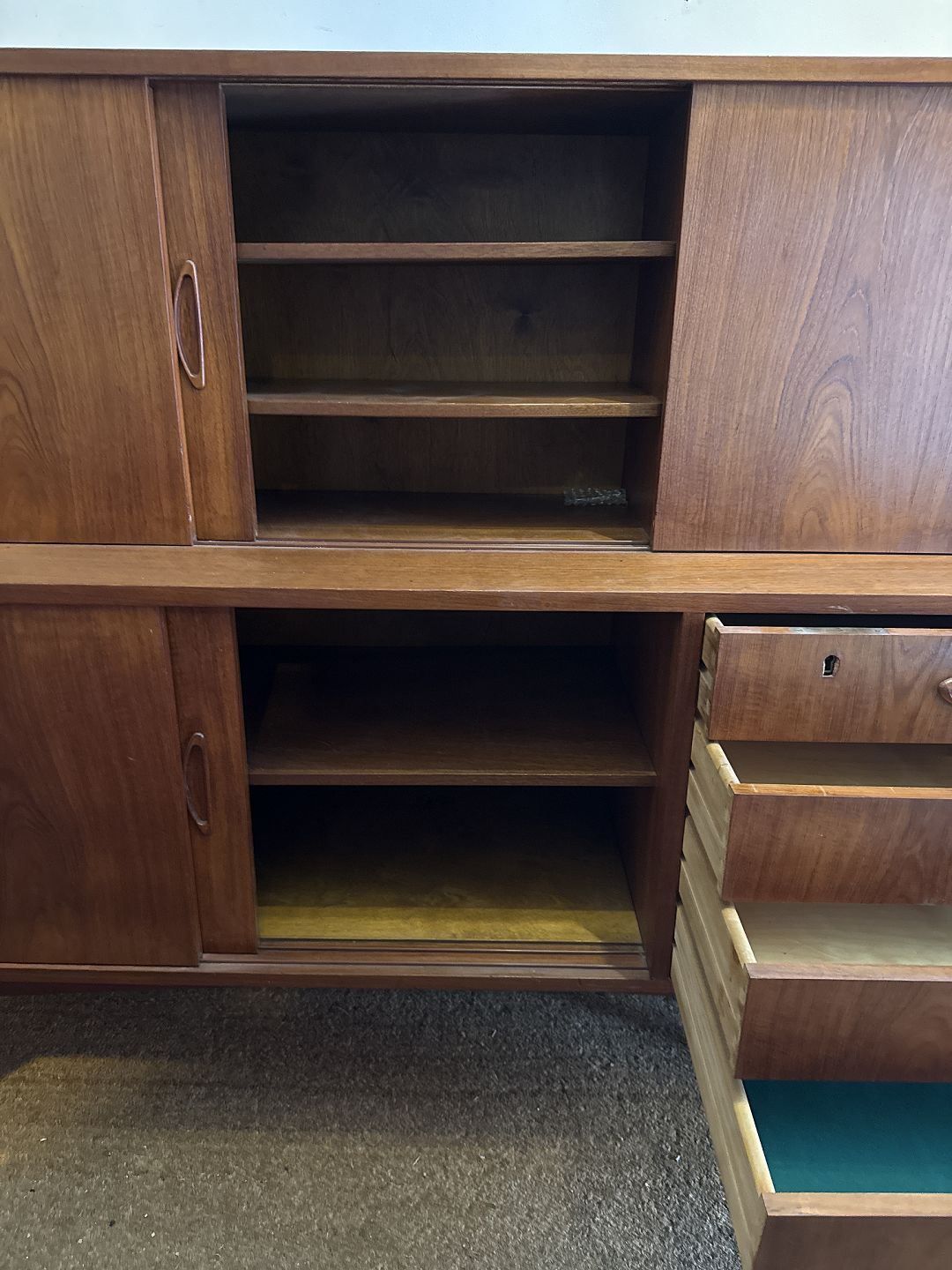 Dansk møbelproducent dobbelt skænk i fineret teak.Fremstillet ca. 1960'erne.