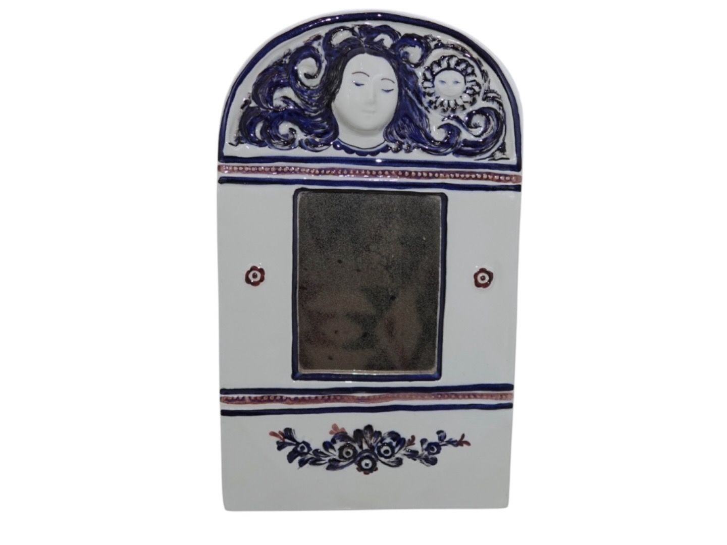Royal Copenhagen Fajance Tenera, lille og sjældent spejl med ansigter.Designet af Doreen Middelboe.