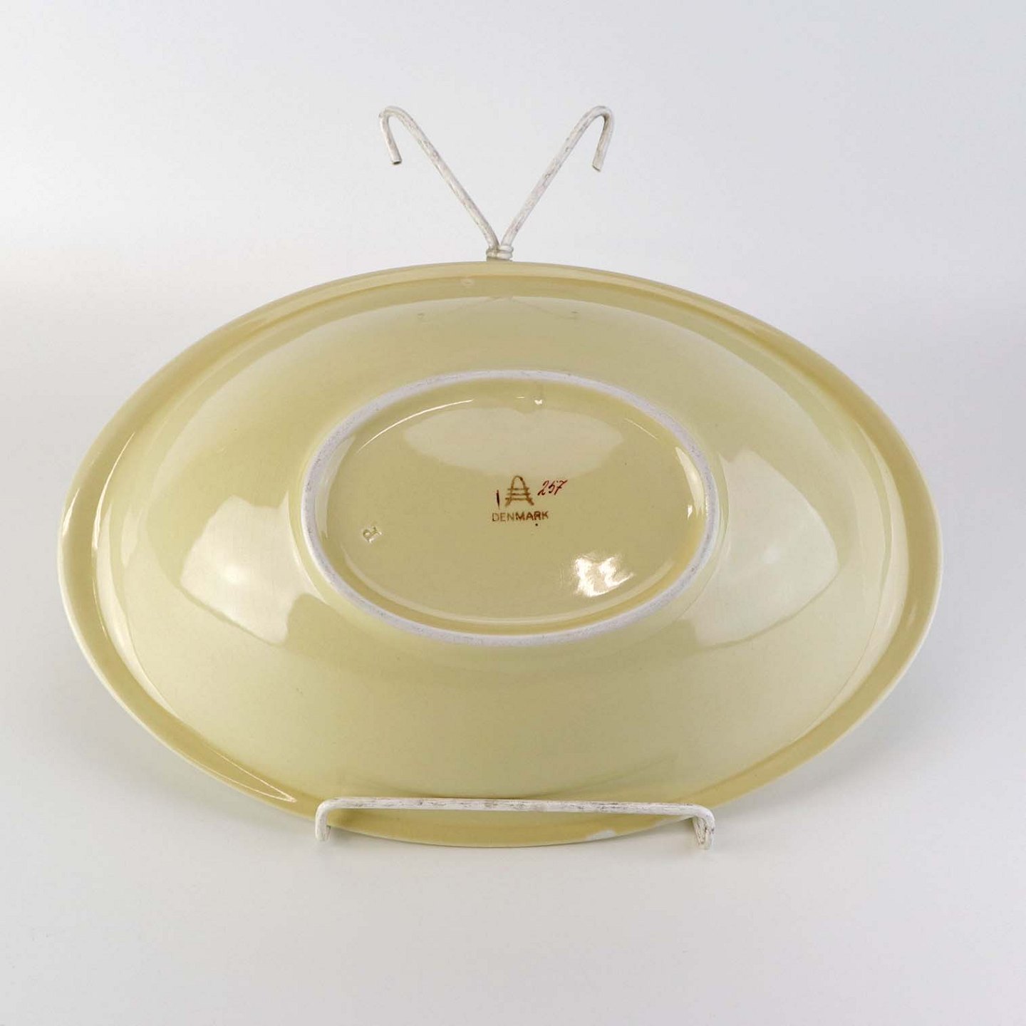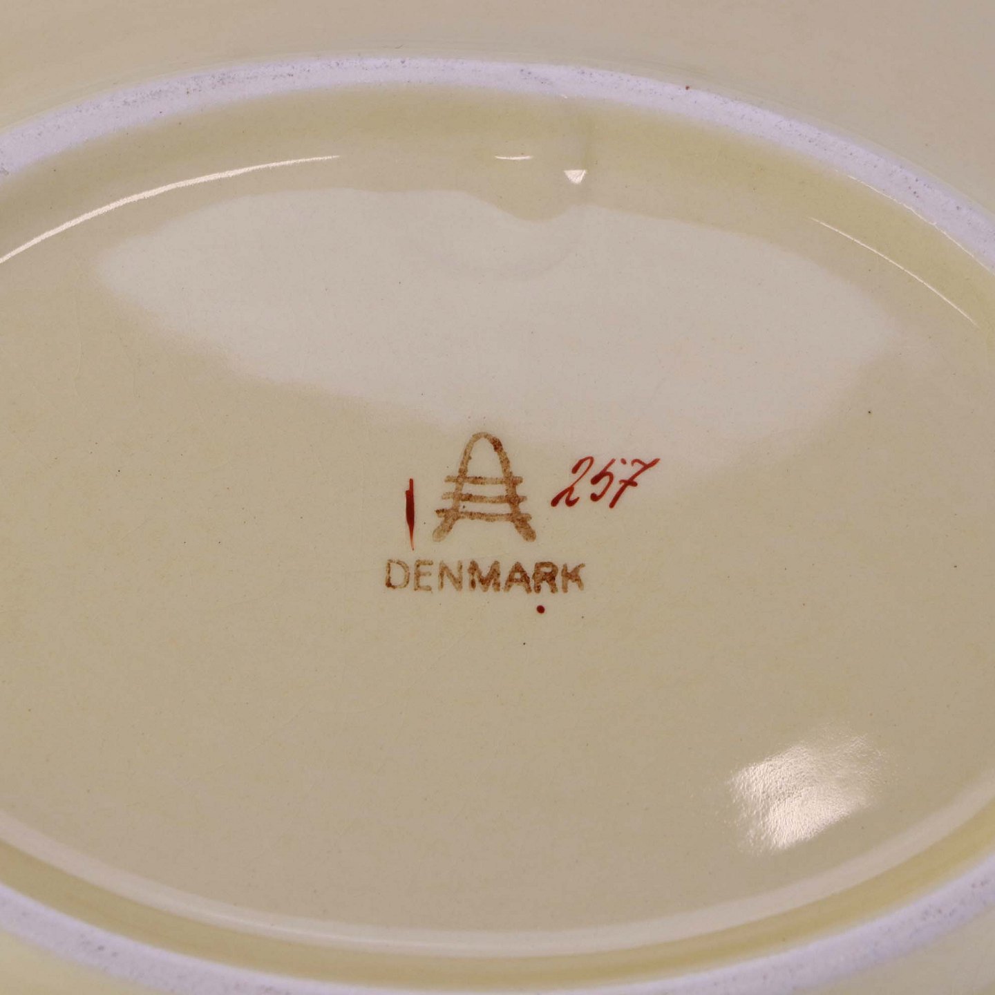 Oval serveringsskål i fajance fra stellet Mariager. Nr. 257Formgiver Thorkild Olsen