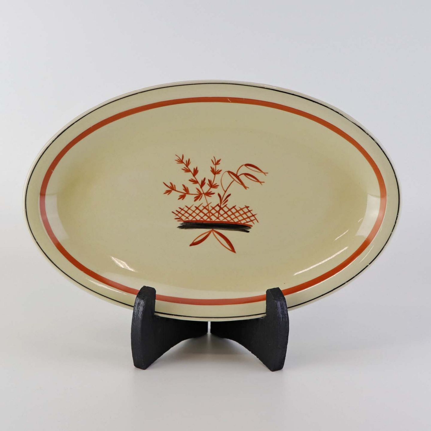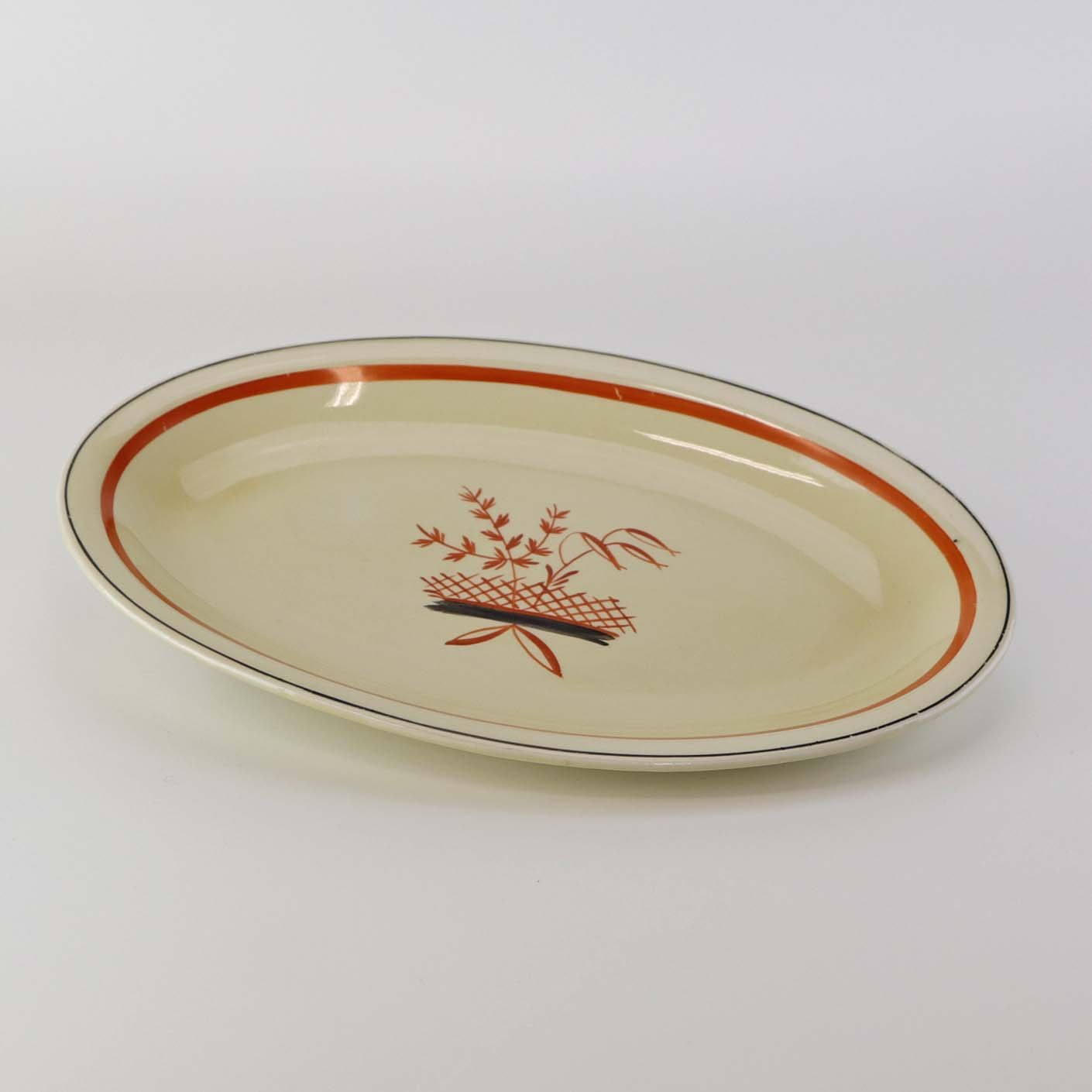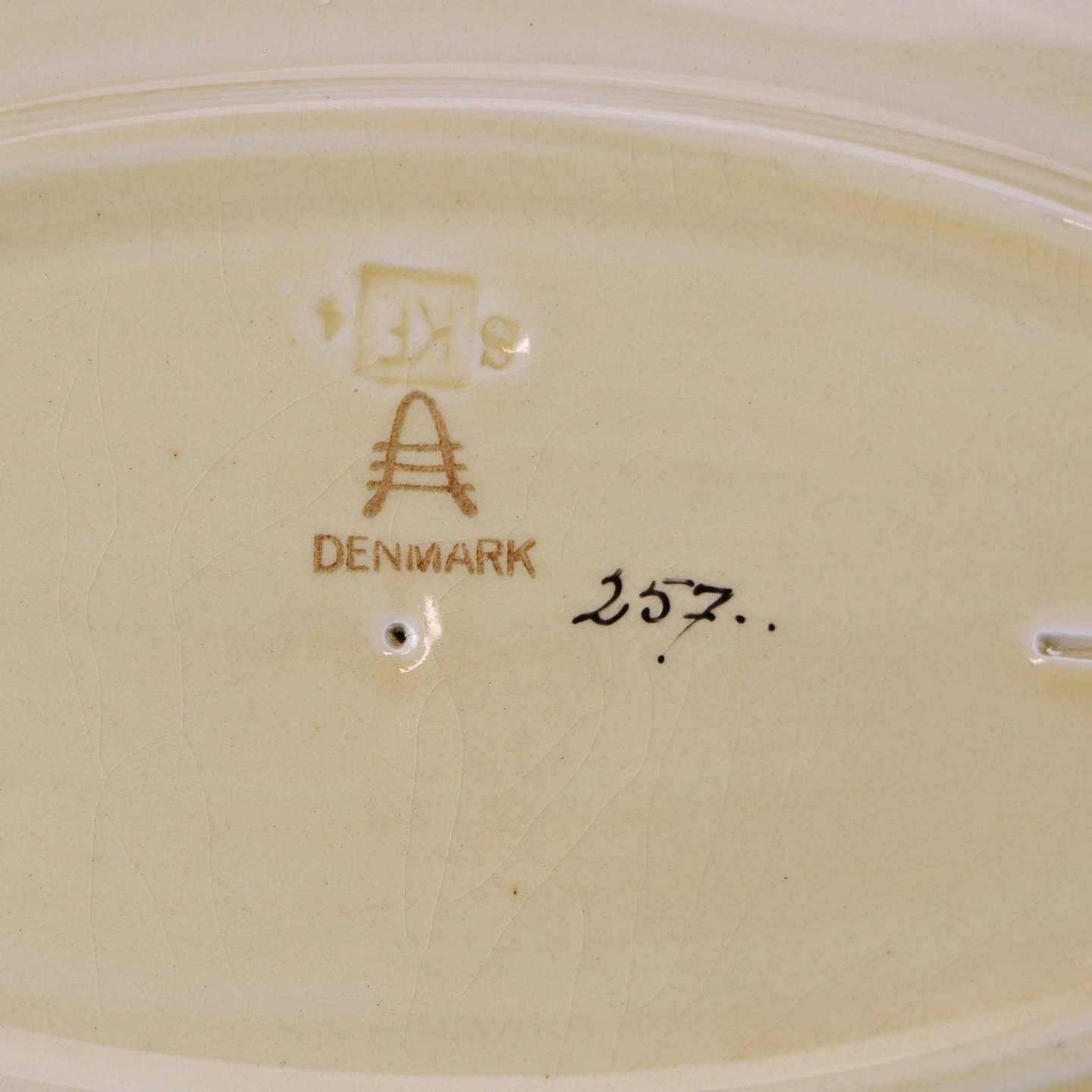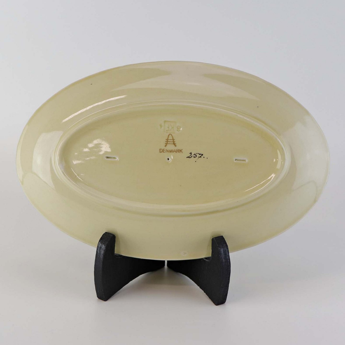 Mindre ovalt serveringsfad i fajance fra stellet Mariager. Nr. 257Formgiver Thorkild Olsen