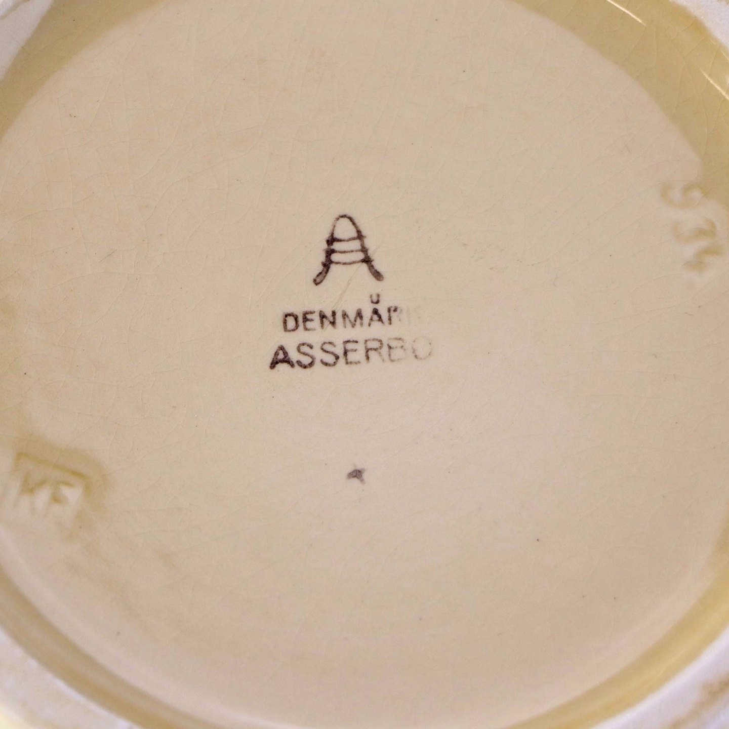 Salatskål i fajance fra stellet Asserbo fremstillet i perioden 1933-1965Formgiver Nils Thorsson