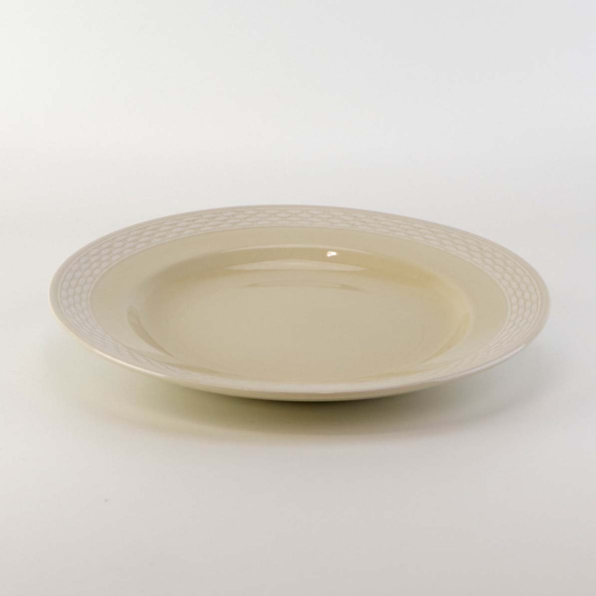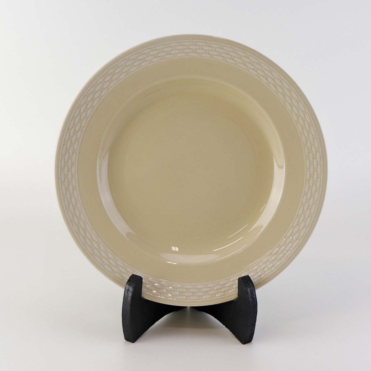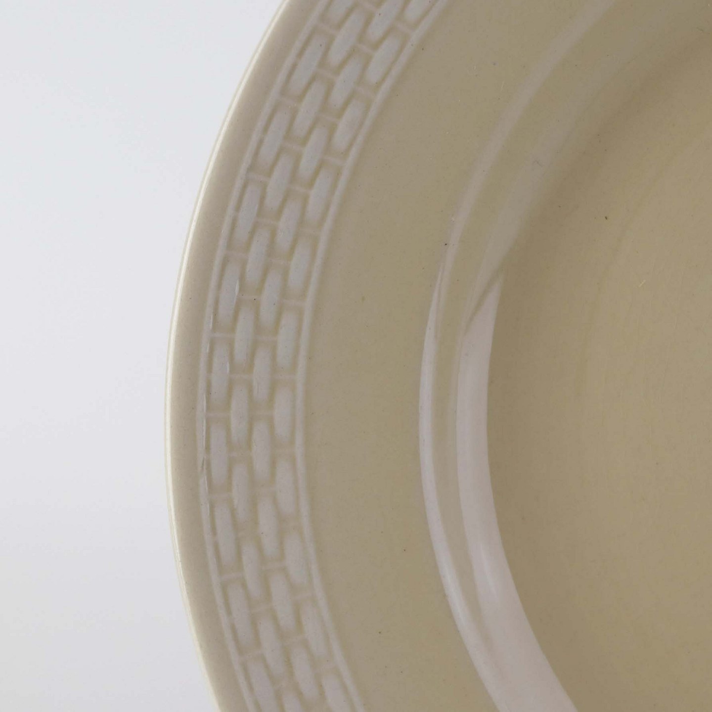 Sandfarvet fajancestel i stelform Viktoria II - Fletværk med dekoration af hvidt flet på gullig baggrund.