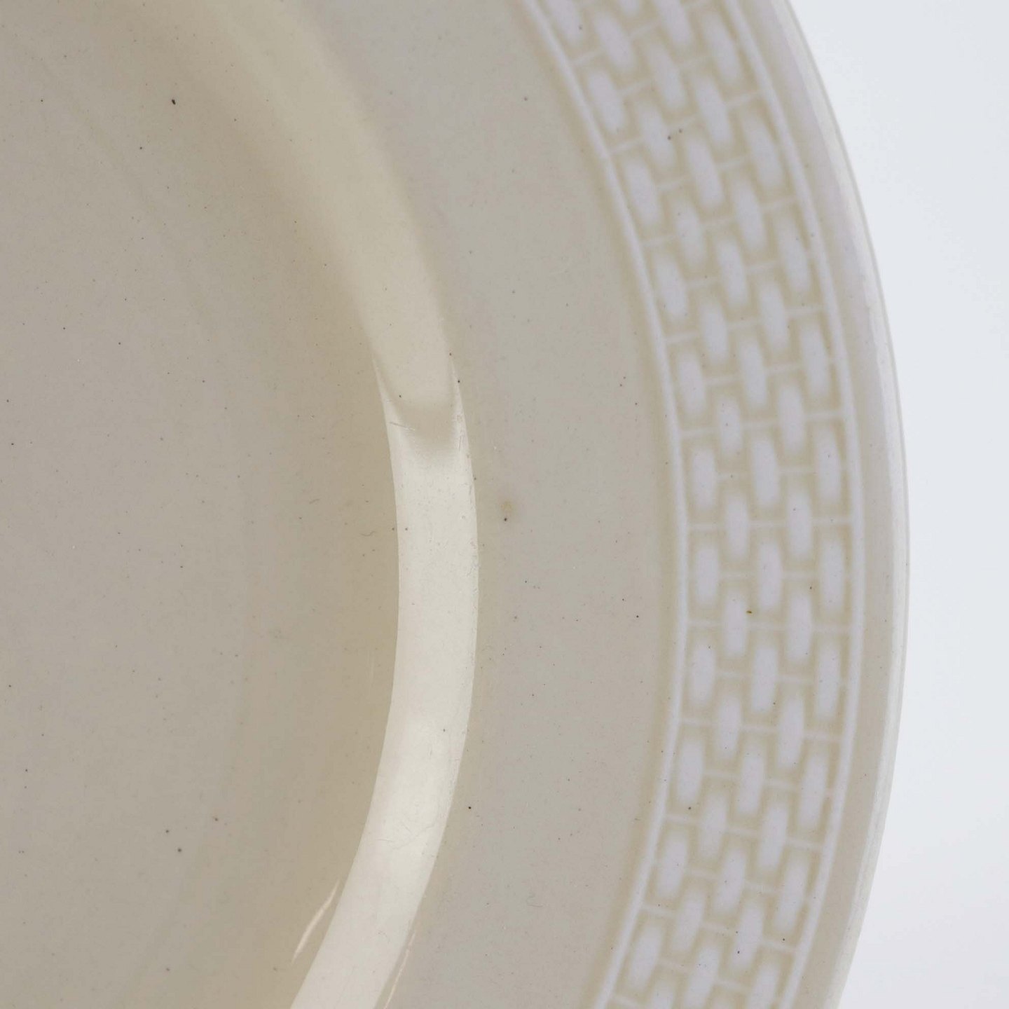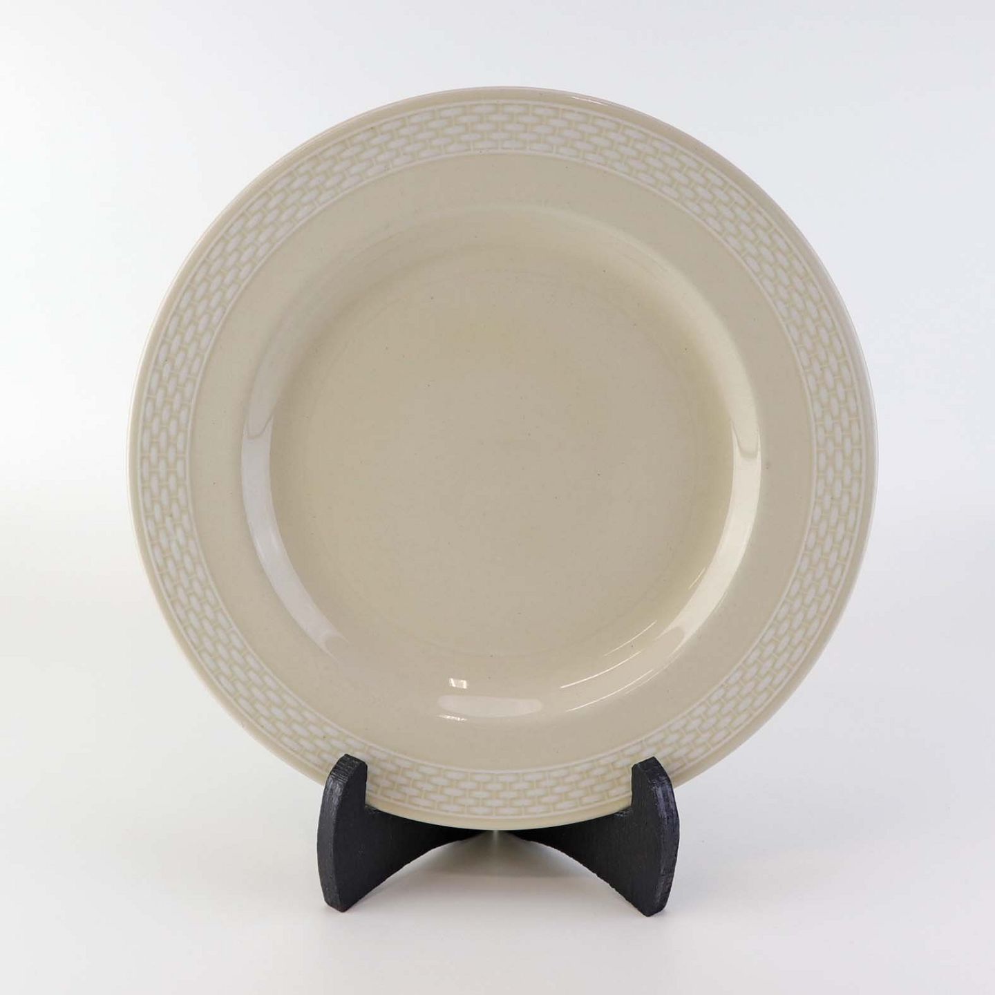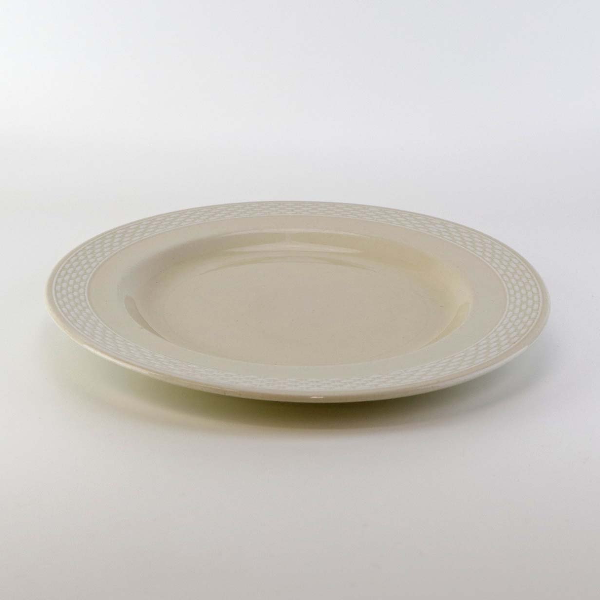 Sandfarvet fajancestel i stelform Viktoria II - Fletværk med dekoration af hvidt flet på gullig baggrund.