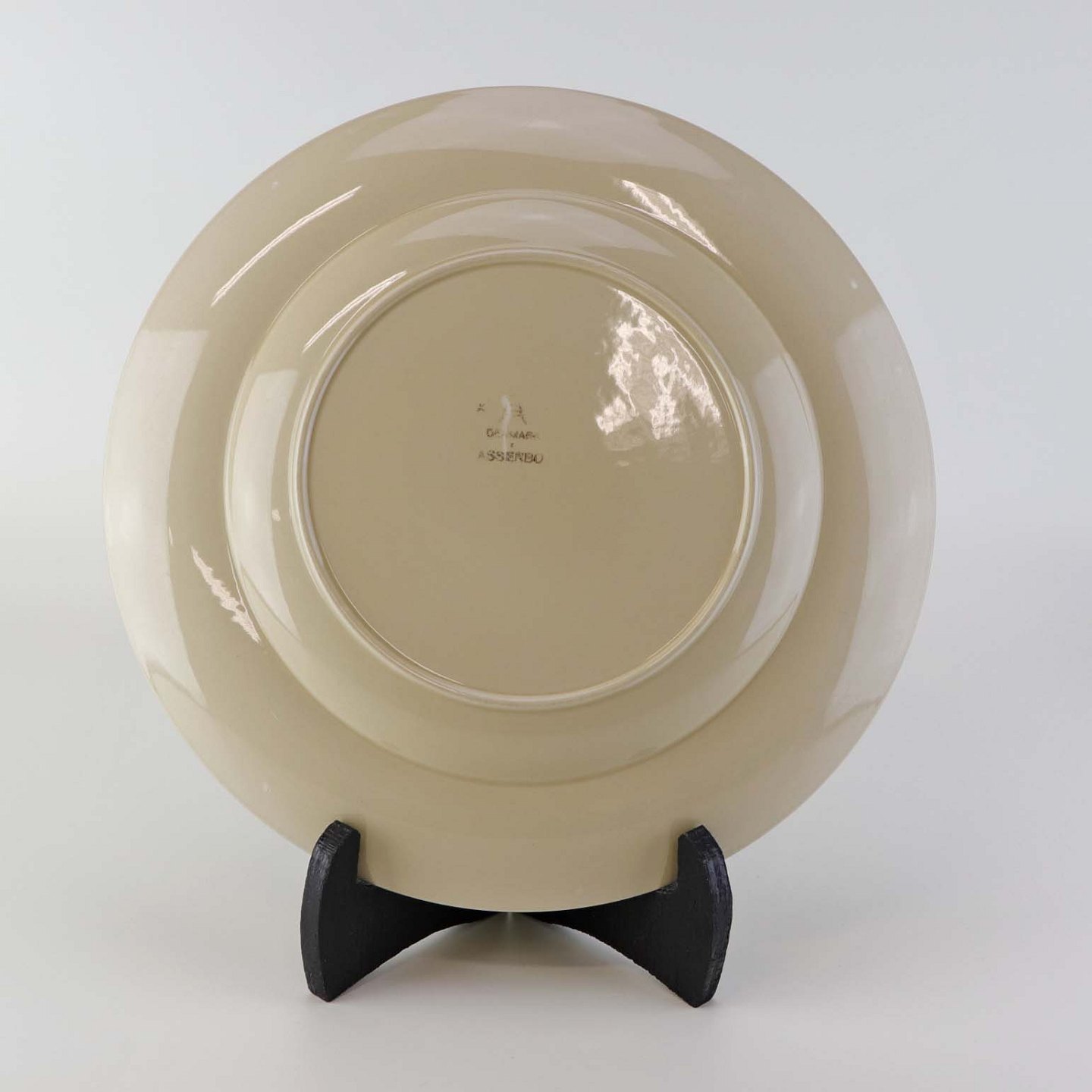 Flad tallerken i fajance fra stellet Asserbo fremstillet i perioden 1933-1965Formgiver Nils Thorsson