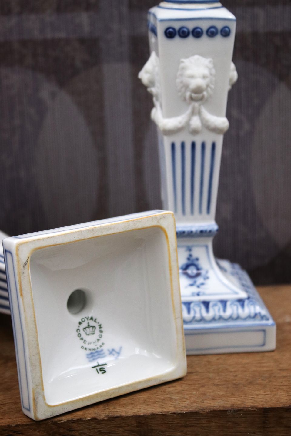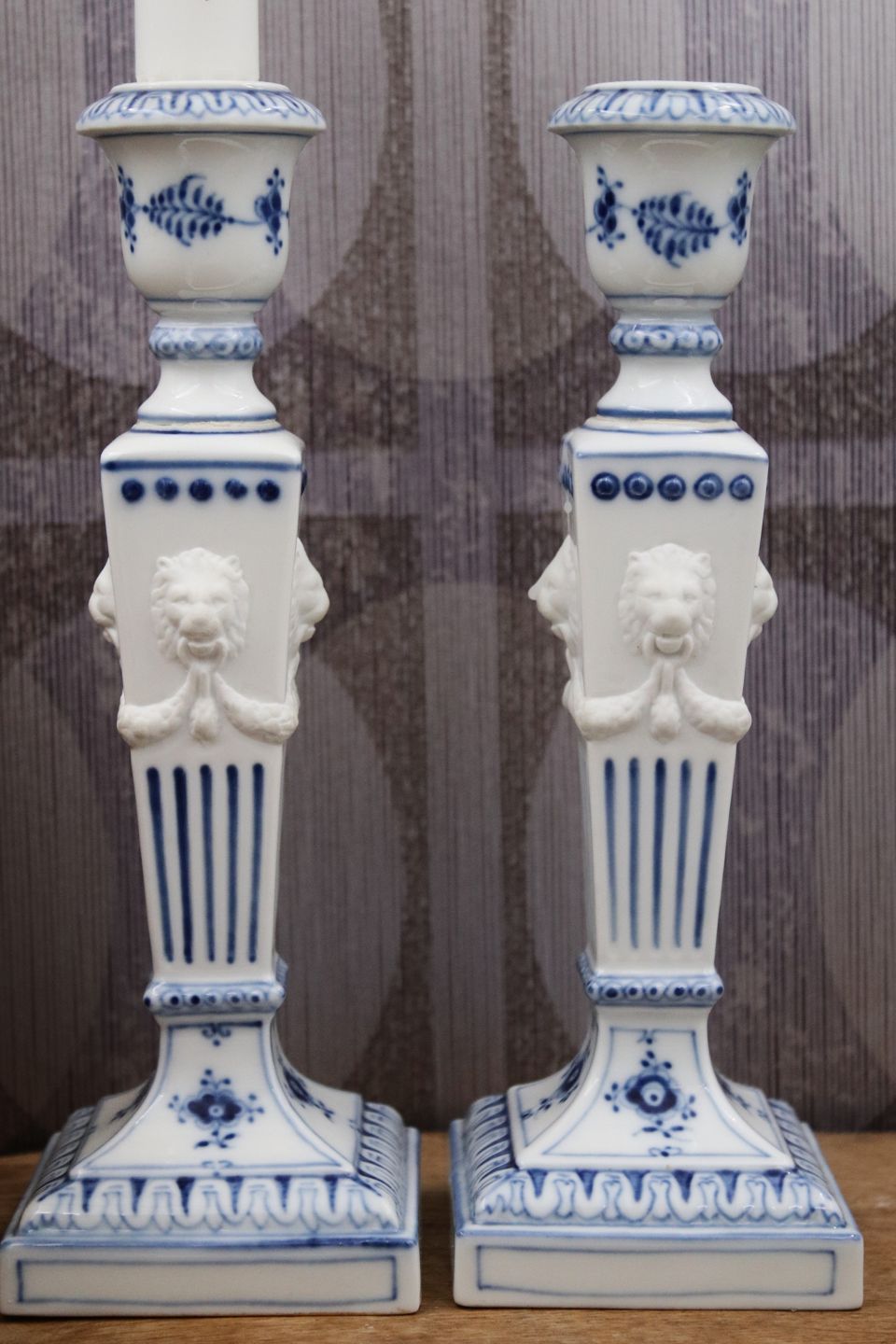 Et par Royal Copenhagen Musselmalet Riflet lysestager "løvestager"...