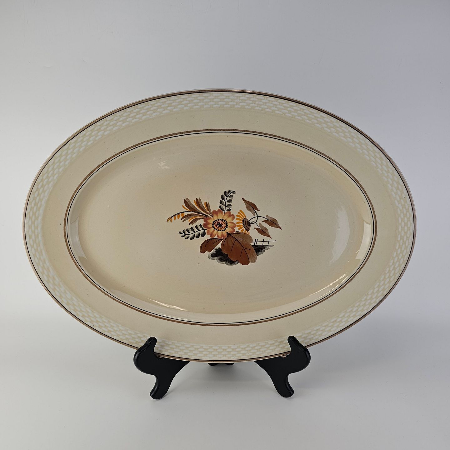 Knud er cremefarvet fajance dekoreret med flettet kant og brune og orange blomster. Stellet blev produceret i år 1934-1963.
