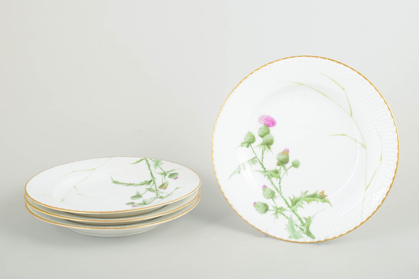 Royal Copenhagen Tidsel, sæt af fire middagstallerkener.Beschreibung: