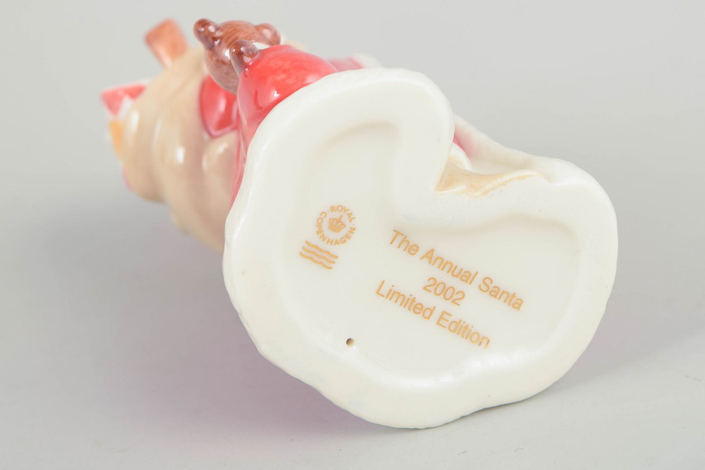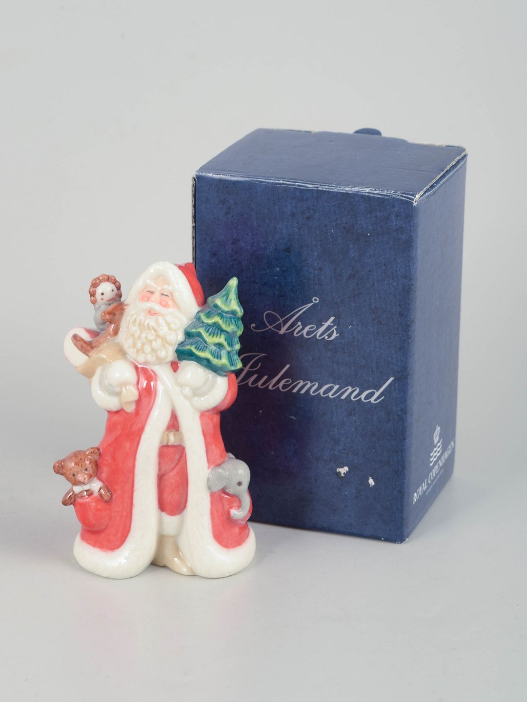 Royal Copenhagen, Sjælden julemand figur.Dekorativ julemand figur i håndmalet porcelæn fra 2002, udført med gavesæk over skulderen. Figuren er detaljeret modelleret med klassisk rød dragt, hvid pelskant og sort bælte. Første sortering. Leveres med original æske.