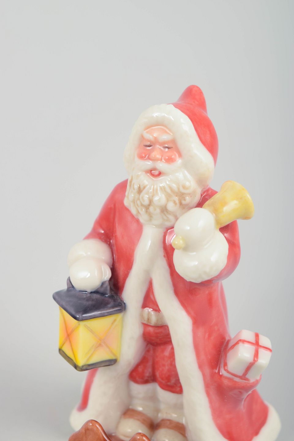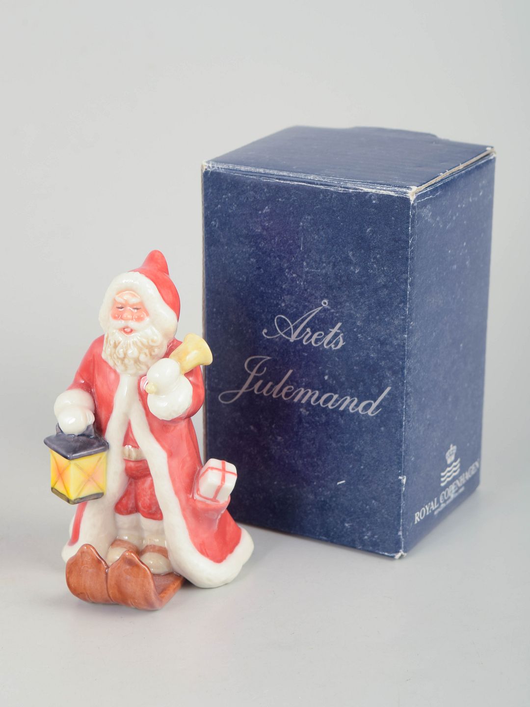 Royal Copenhagen, Sjælden julemand figur.Dekorativ julemand figur i håndmalet porcelæn fra 2001, udført med lanterne og gavesæk. Figuren fremstår detaljeret modelleret med klassisk rød kappe og hvid pelskant. Leveres med original æske. Første sortering.