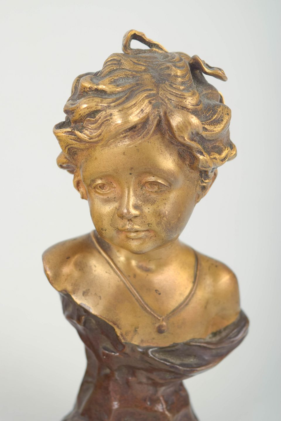 René de Saint-Marceaux, Polette skulptur.Figurativ buste i massivt bronze forestillende ung pige med let drejet hoved og blødt modellerede ansigtstræk. Støbt hos Louchet, Paris, i 1890’erne.