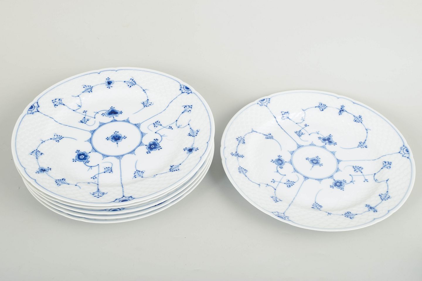 Royal Copenhagen Musselmalet Riflet, sæt af seks middagstallerkener.Beschreibung: