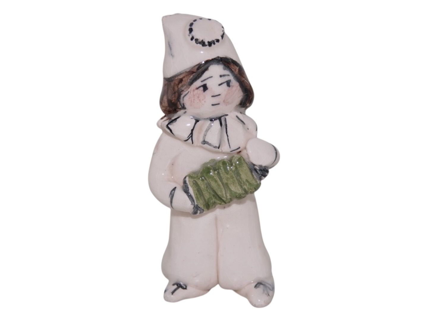 Doreen Middelboe keramikLille figur af pige i harlekin tøj og med harmonika