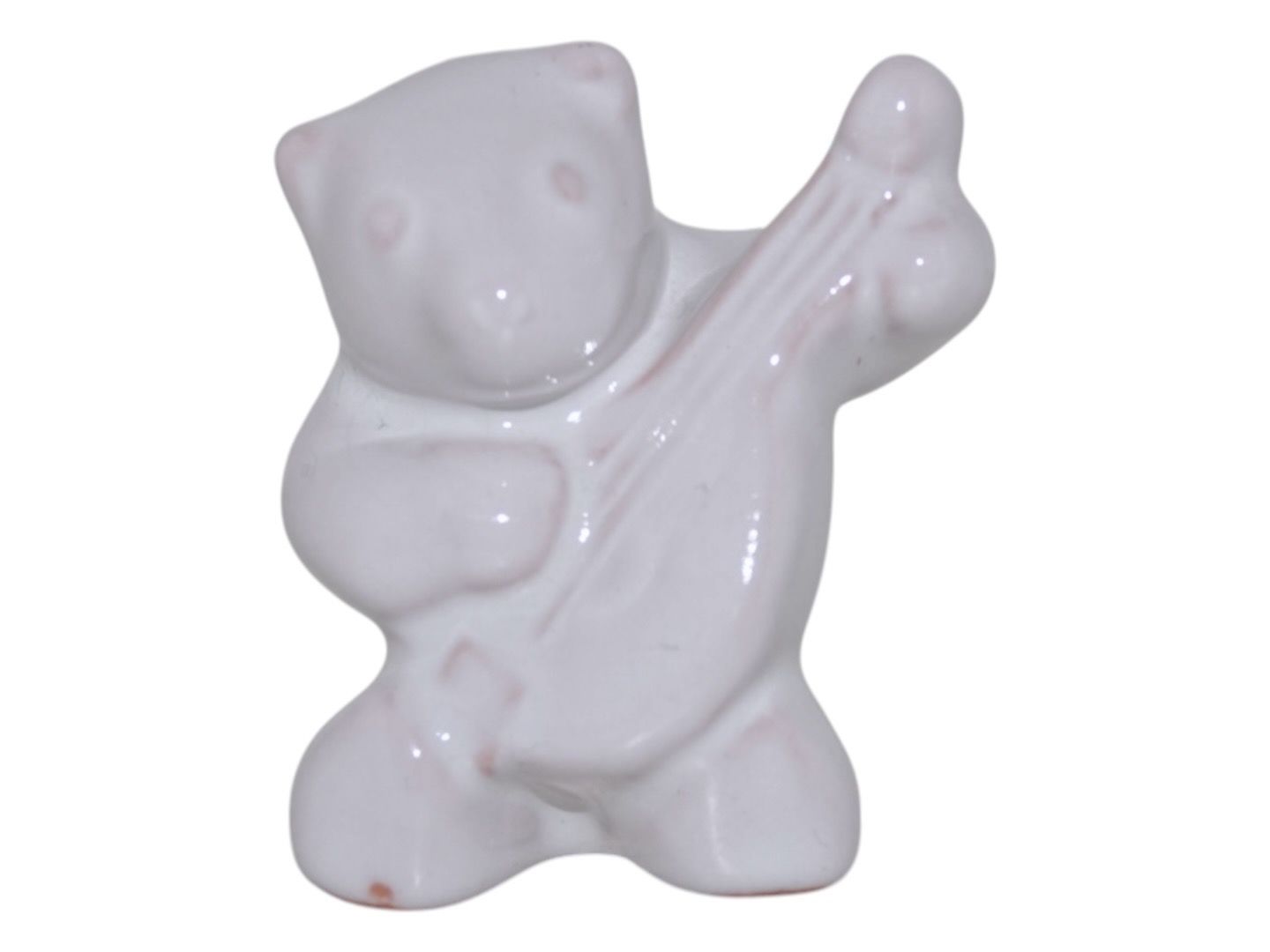 Hjorth keramik miniature figurHvid bjørneunge med mandolin