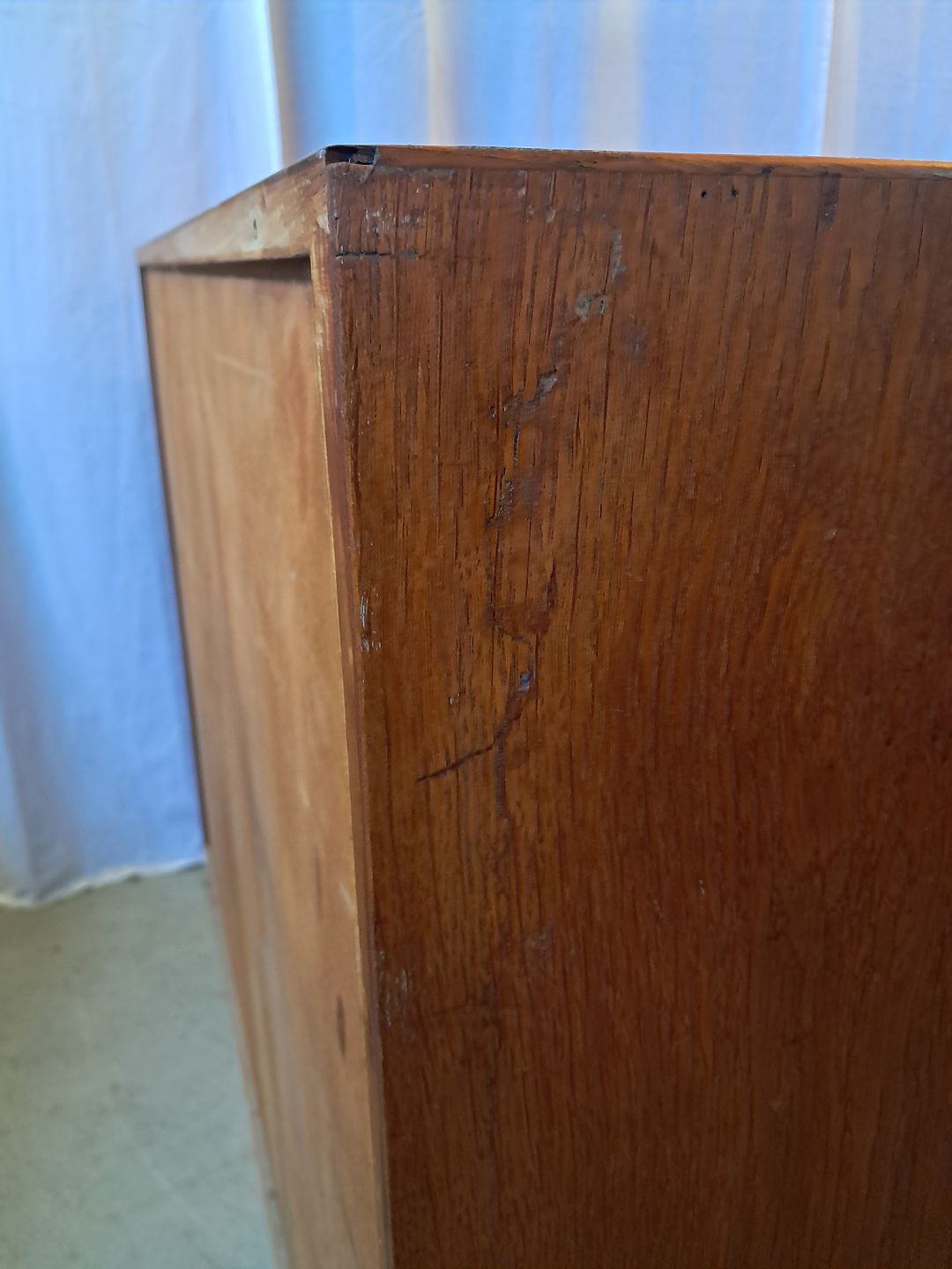Børge Mogensen reol i fineret egetræ, fra 1960erne.Den har brugsspor og en reparation. (se foto)
