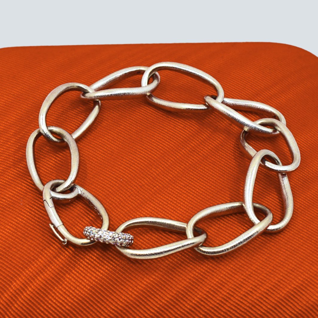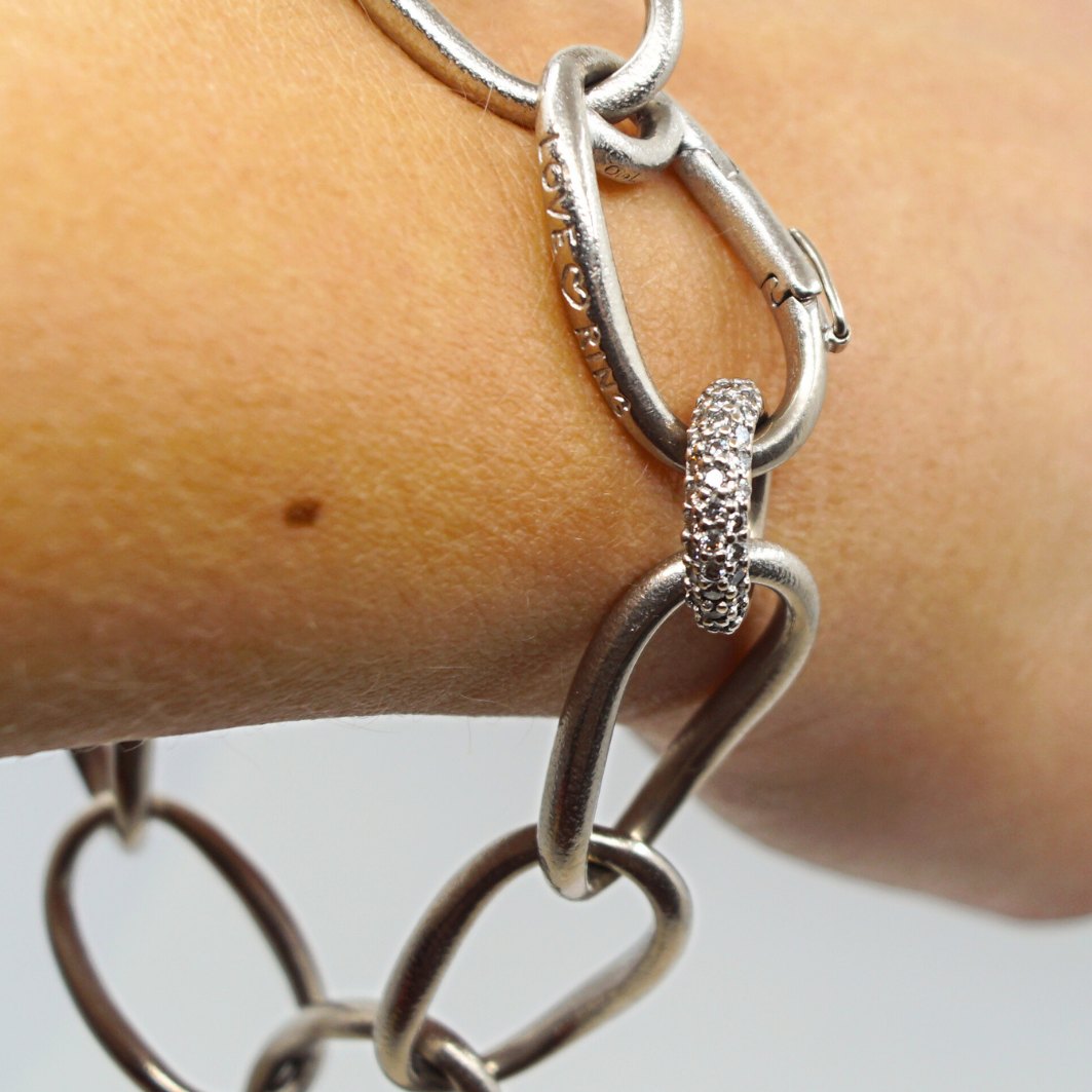 Ole Lynggaard; Leddelt Love armbånd - heavy, i 14 kt. hvidguld med diamanter. Lås med sikkerhedslås.Designet af Charlotte Lynggaard.