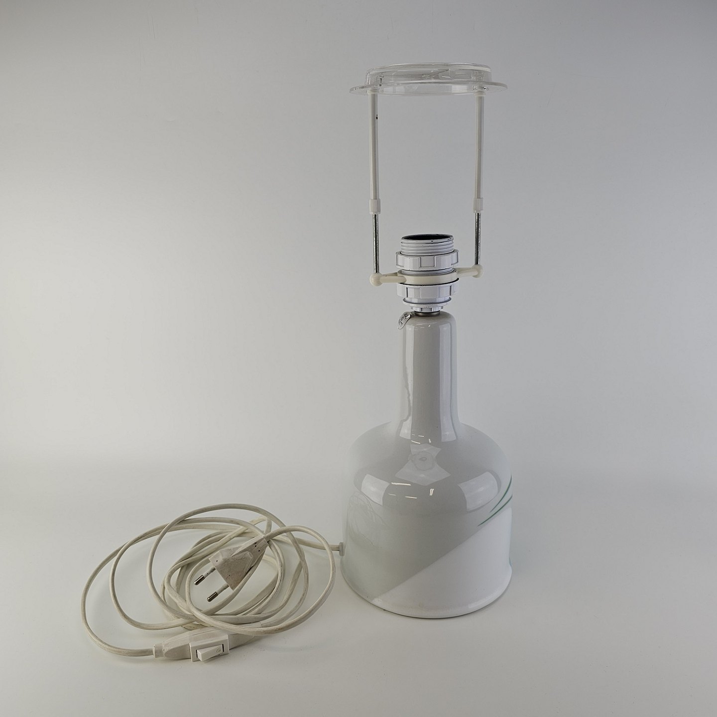 Lampefod i hvid fajance med dekoration af blå graduering og sorte streger, model NilusNr. 971/3904
