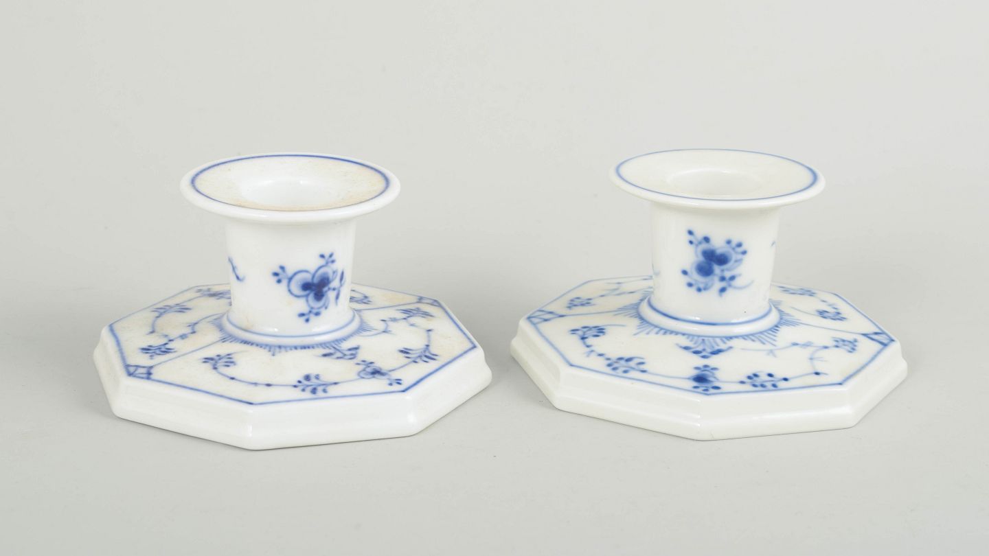 Royal Copenhagen Musselmalet Riflet, par lysestager.