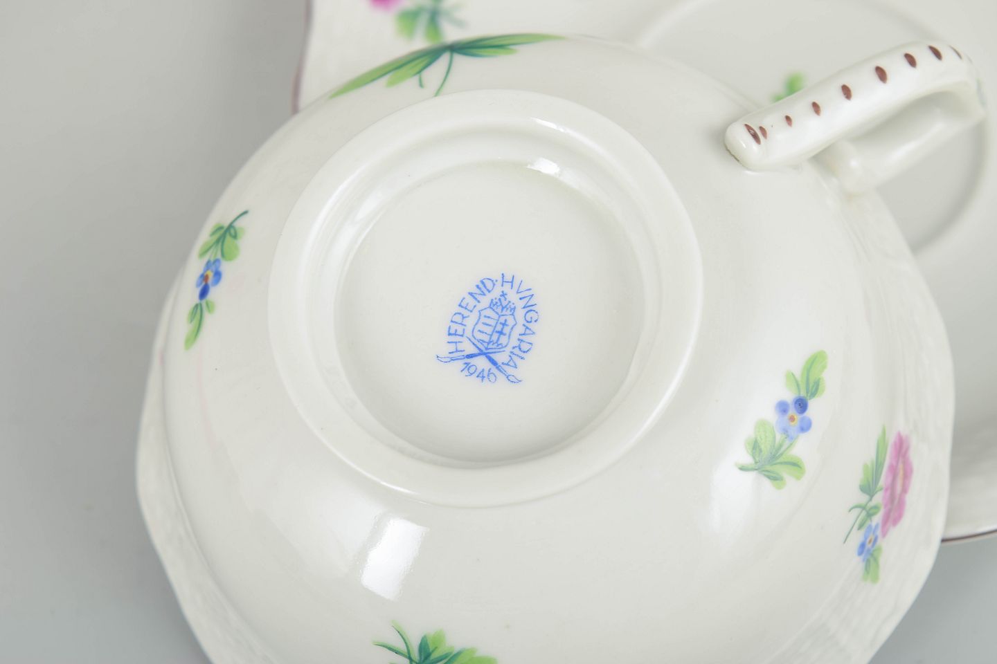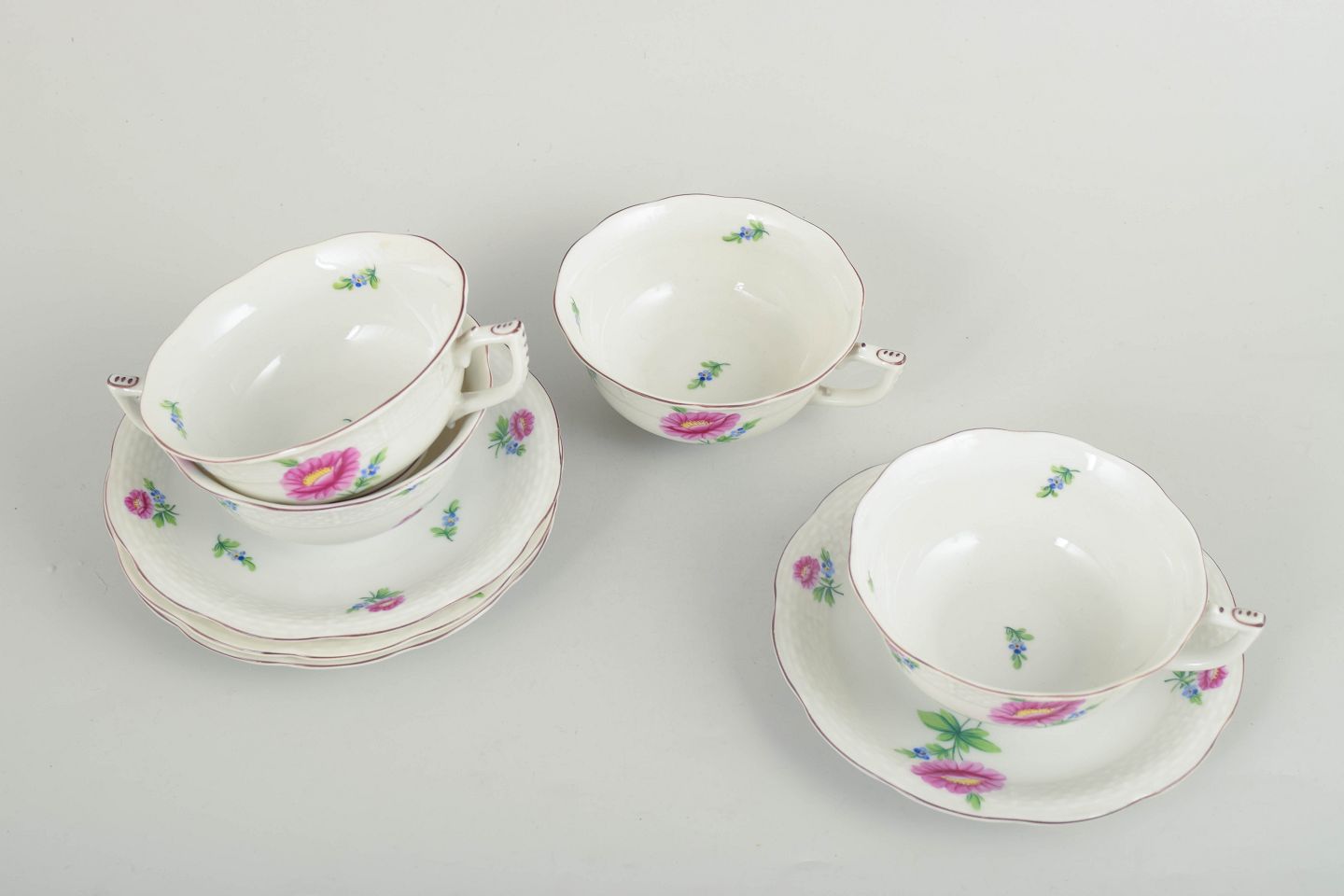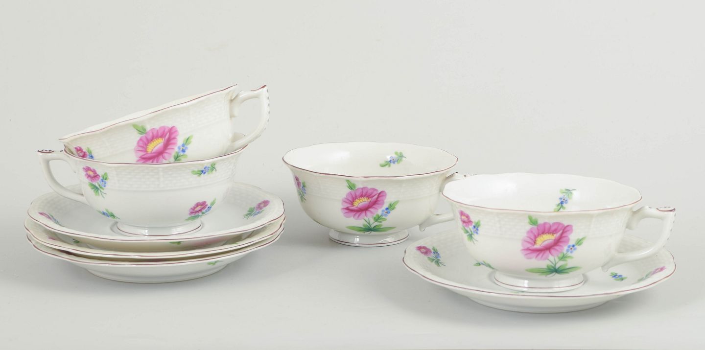 Herend, sæt på fire tekopper med tilhørende underkopper.