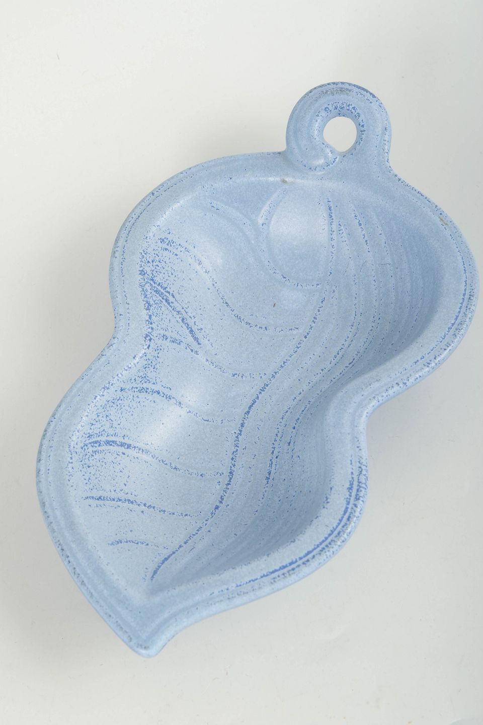 Gunnar Nylund for Rörstrand, skål.Organisk formet skål i stentøj med integreret hank og svungen, bladlignende form. Dekoreret med lys blå glasur med let struktur, typisk for Gunnar Nylunds formsprog hos Rörstrand i midten af det 20. århundrede. Første sortering.