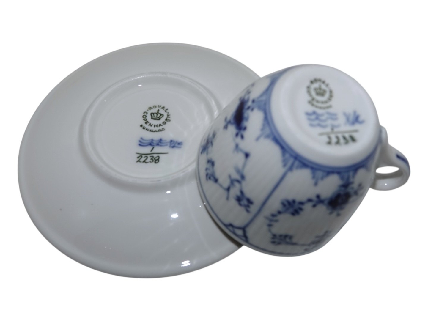 Royal Copenhagen Musselmalet Riflet Jernporcelæn (hotelporcelæn), kaffekop med tilhørende underkop.Dekorationsnummer 1/2238.