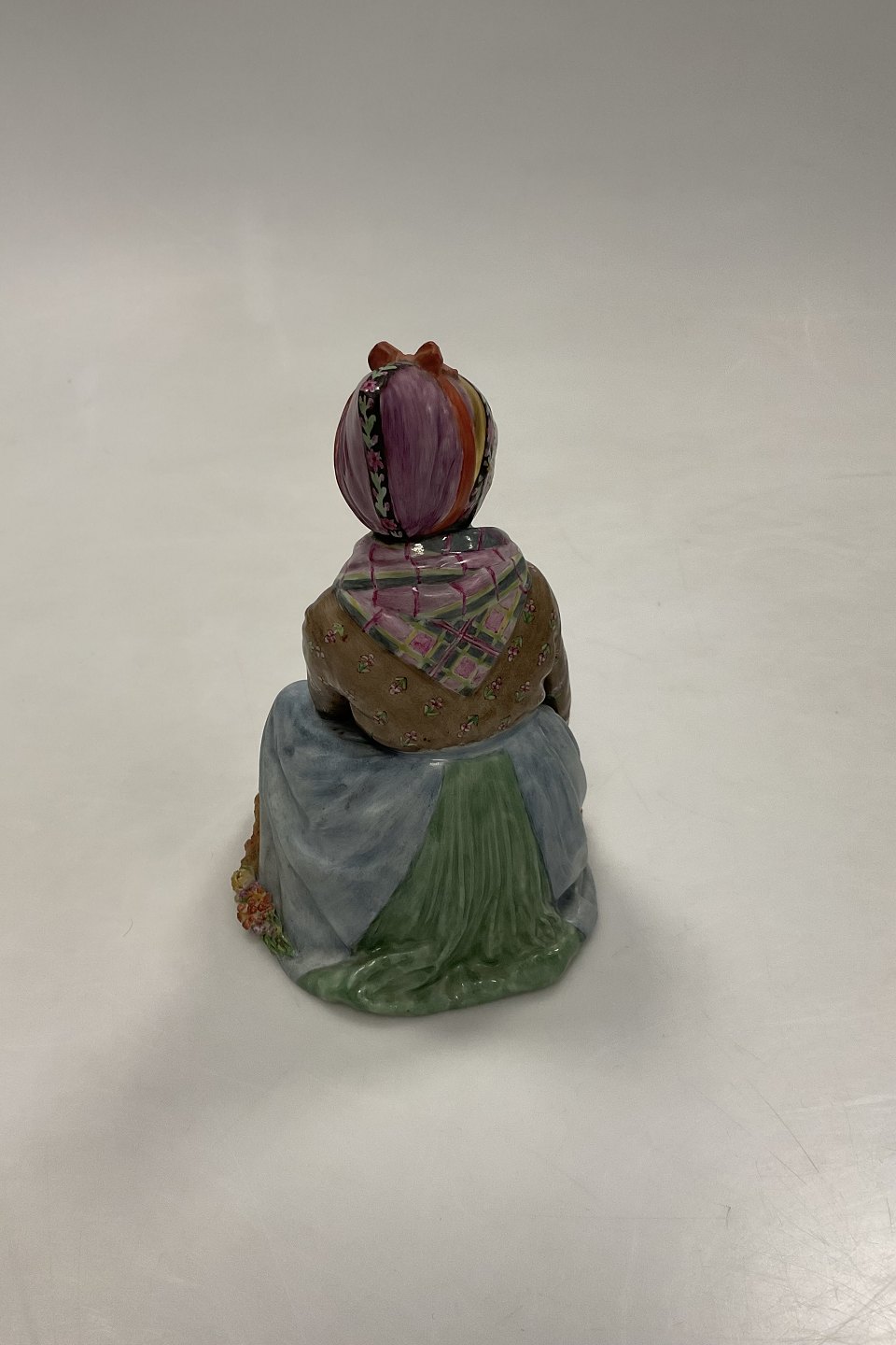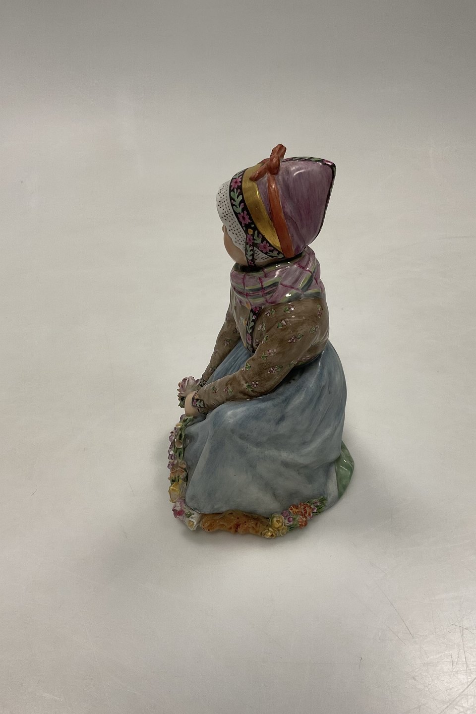 Royal Copenhagen Siddende Fanøpige af Carl Martin-Hansen No. 12413. Med Juliane Marie stempel. Måler 14,5 cm. 1. sortering, med små afslag på blomster - se billederLager: 1