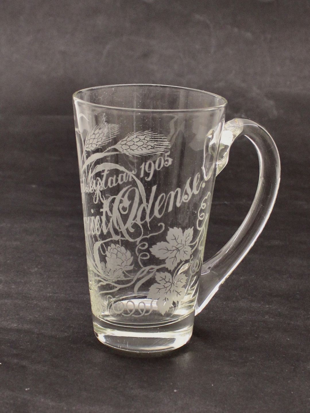 Øl krus med Hank H. 13,5 cm. Bryggeriet Odense Glædelig Nytår 1905 emne nr. 632408