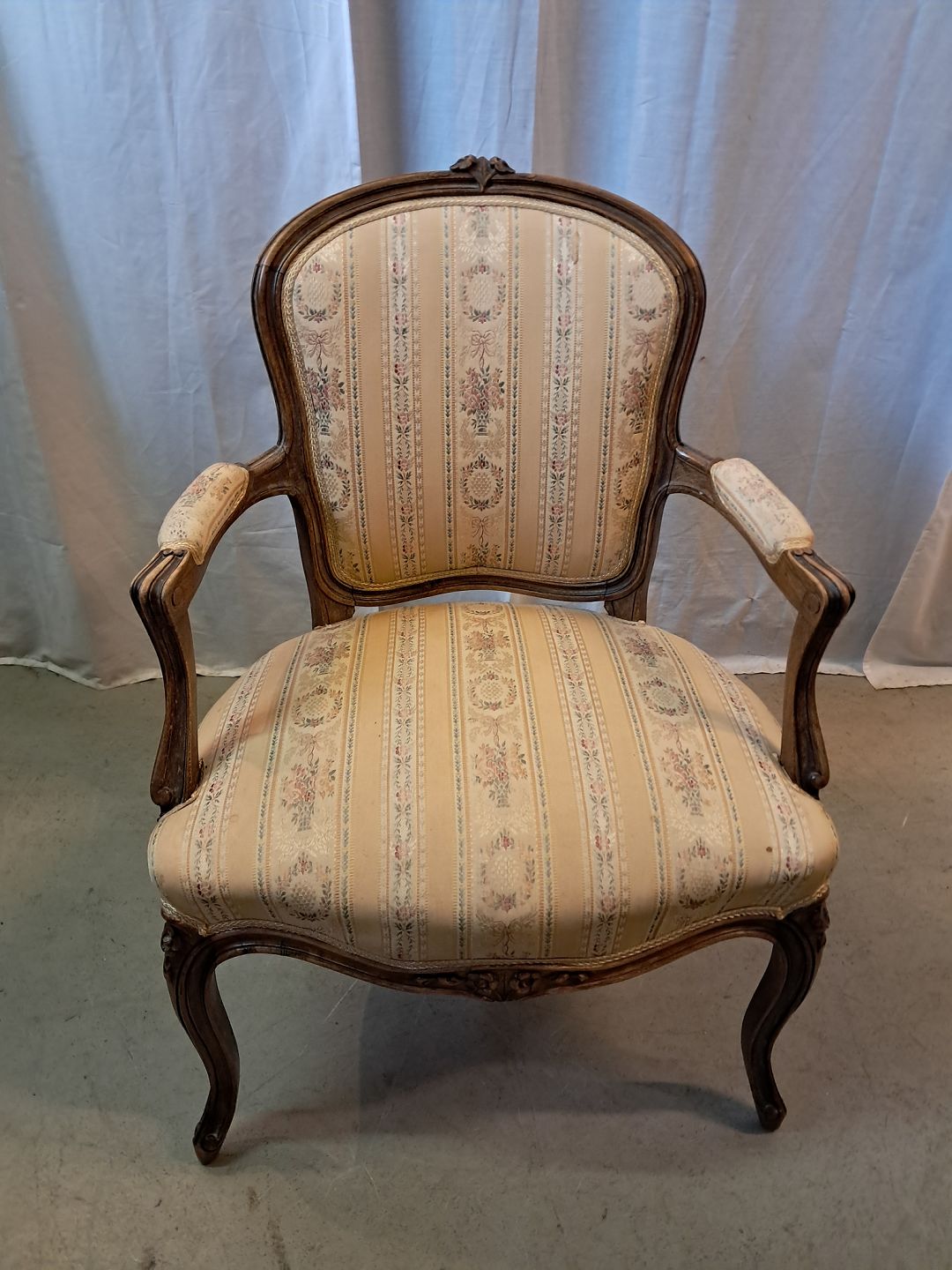 Rokokostol i massivt bøgetræ, fra 1950erne.Den har bruggspor.