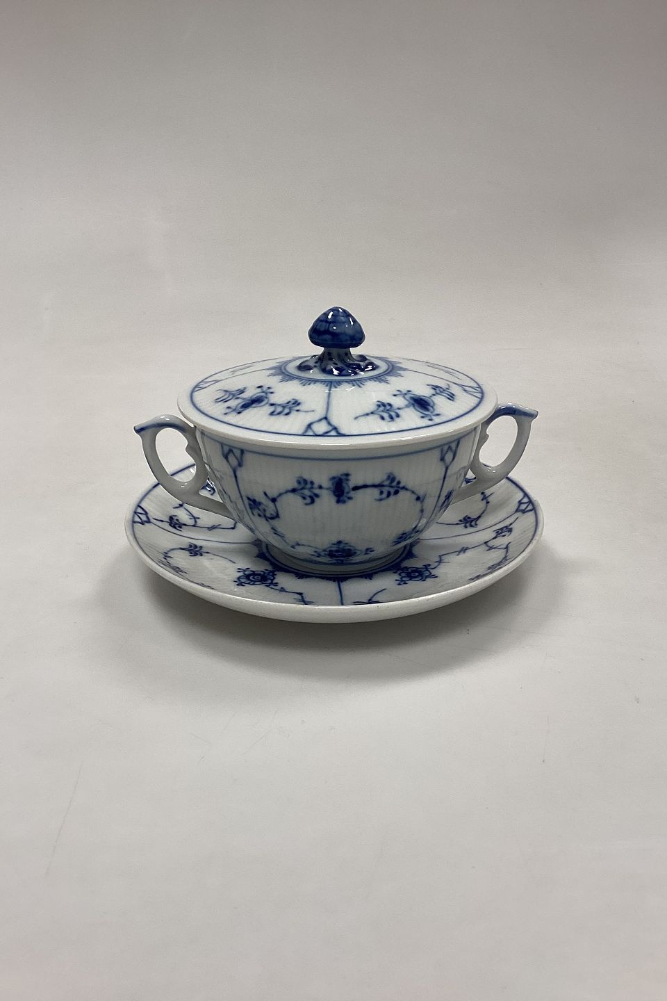 Royal Copenhagen Musselmalet Riflet Bouillon Kop med Underkop No. 2199