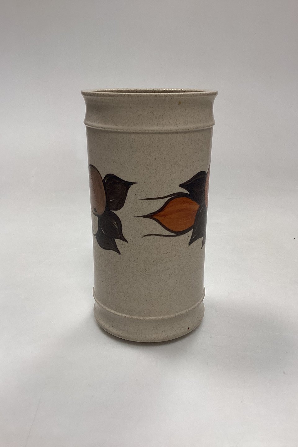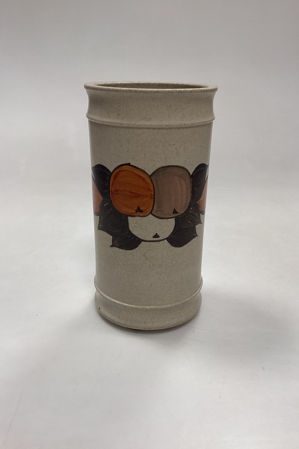 Kähler Keramik Vase med Æbler No. 811-18. Motiv i orange og brun på baggrund af råhvidt stentøj.Måler 18,5 cm / 7,28 in.